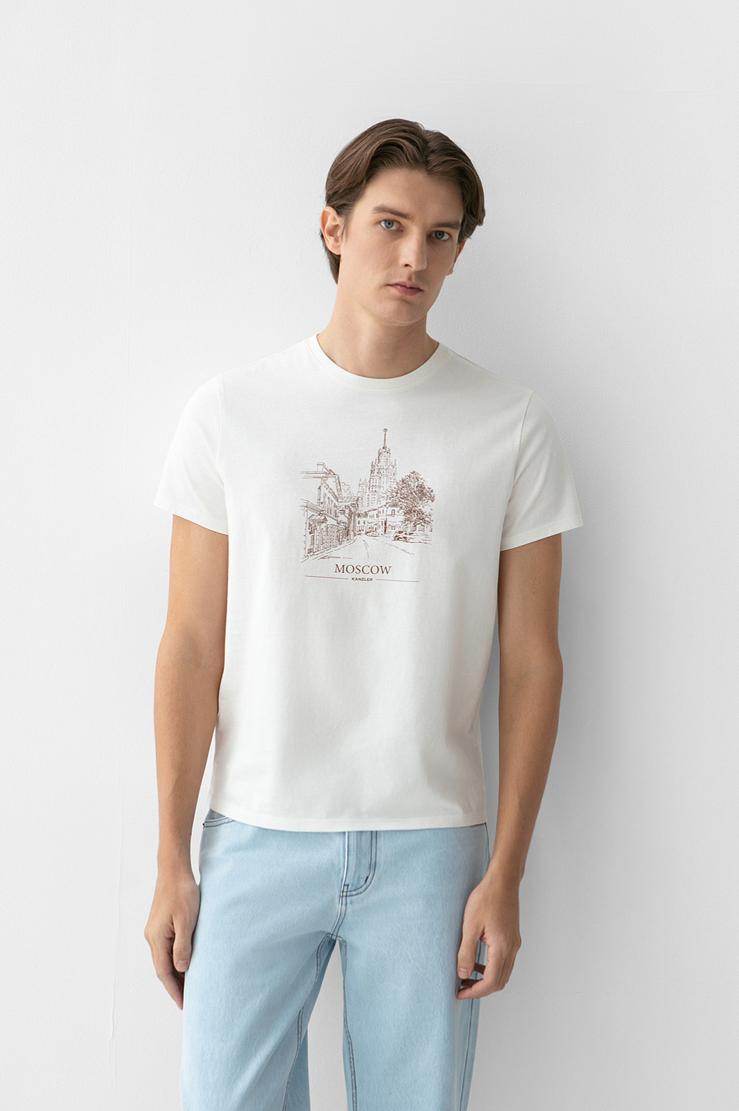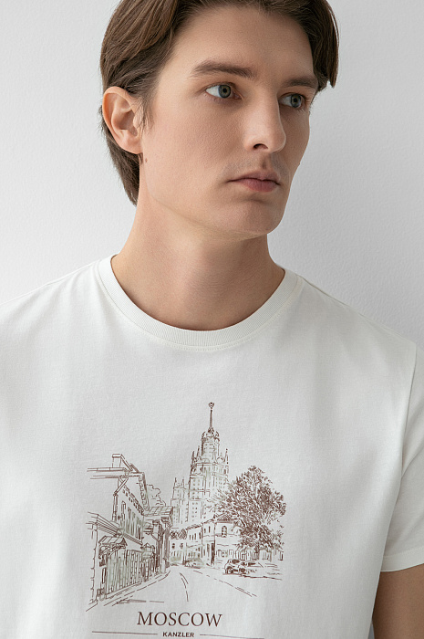 Футболка из хлопка, цвет бежевый светлый, цена 3 990 руб. - купить в интернет-магазине KANZLER