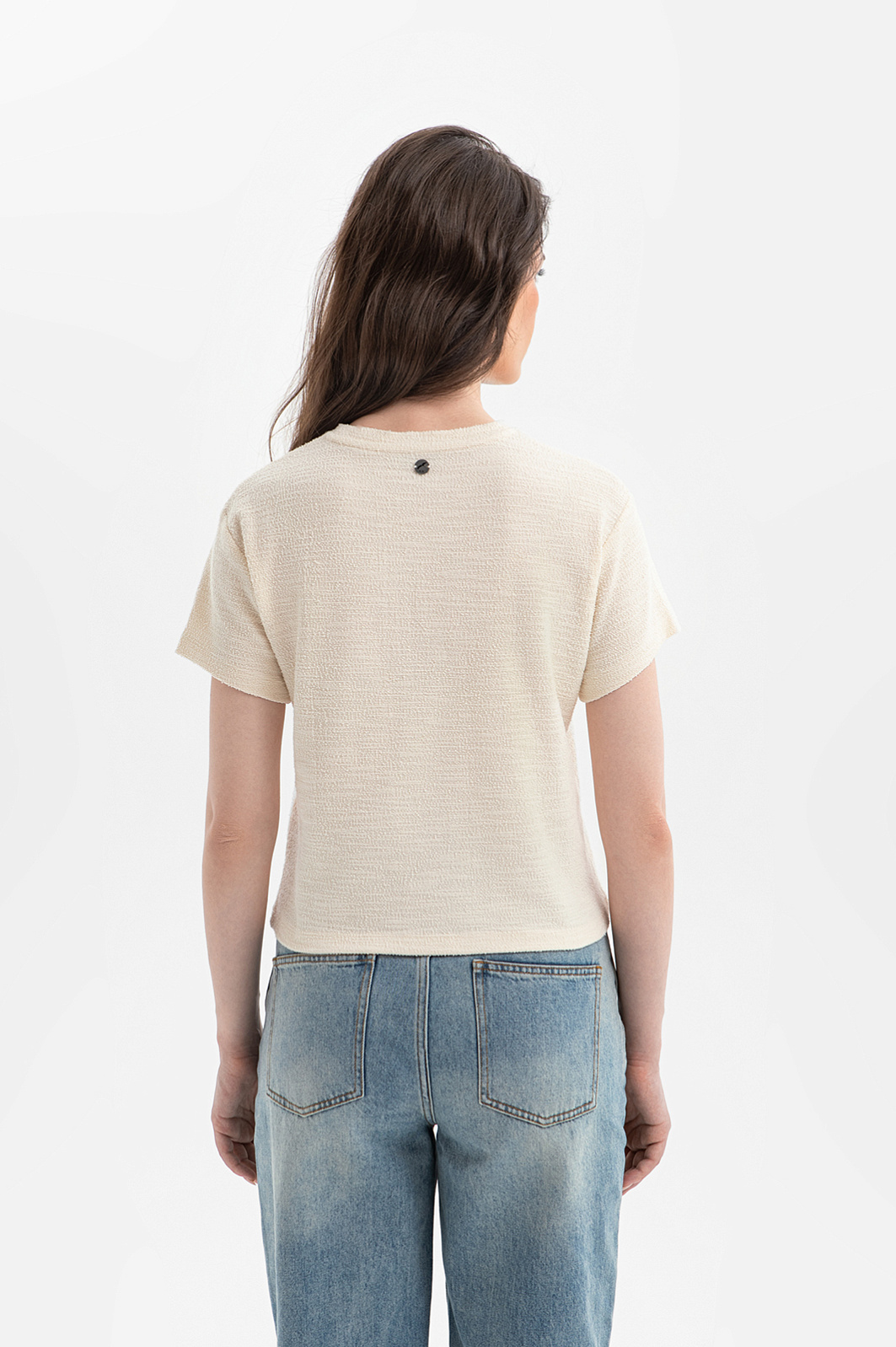 Футболка KANZLER из чистого хлопка придаёт повседневным образам лёгкость, свежесть и ощущение непринуждённой элегантности. Молочный оттенок делает модель универсальной основой гардероба: она легко сочетается с джинсами, брюками и шортами, дополняя как расслабленные, так и более продуманные повседневные образы. Лаконичный дизайн без лишнего декора подчёркивает современную минималистичную эстетику. Небольшой круглый металлический шильдик на спинке выступает деликатным фирменным акцентом. Мягкий высококачественный трикотаж из натурального гипоаллергенного хлопка (100%) приятно ощущается на коже и поддерживает естественную циркуляцию воздуха.