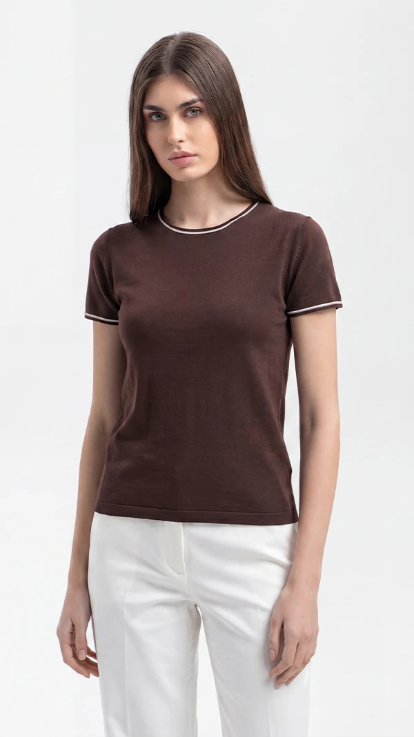 Футболка из хлопка, шелка и льна, цвет коричневый, цена 5 990 руб. - купить в интернет-магазине KANZLER