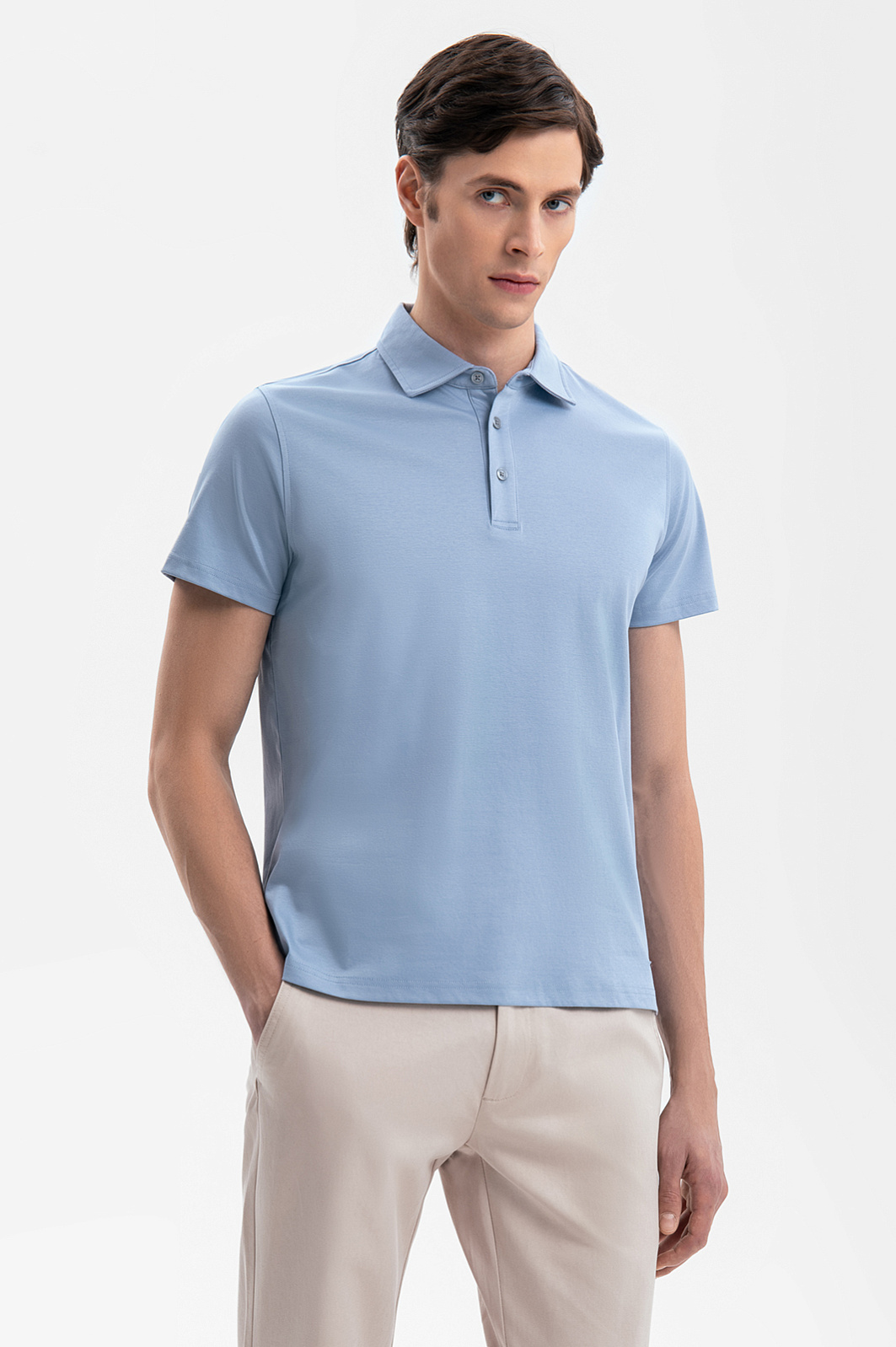 Поло из мерсеризованного хлопка, цвет голубой, цена 5 990 руб., код 269172 - купить в Уфе в интернет-магазине KANZLER