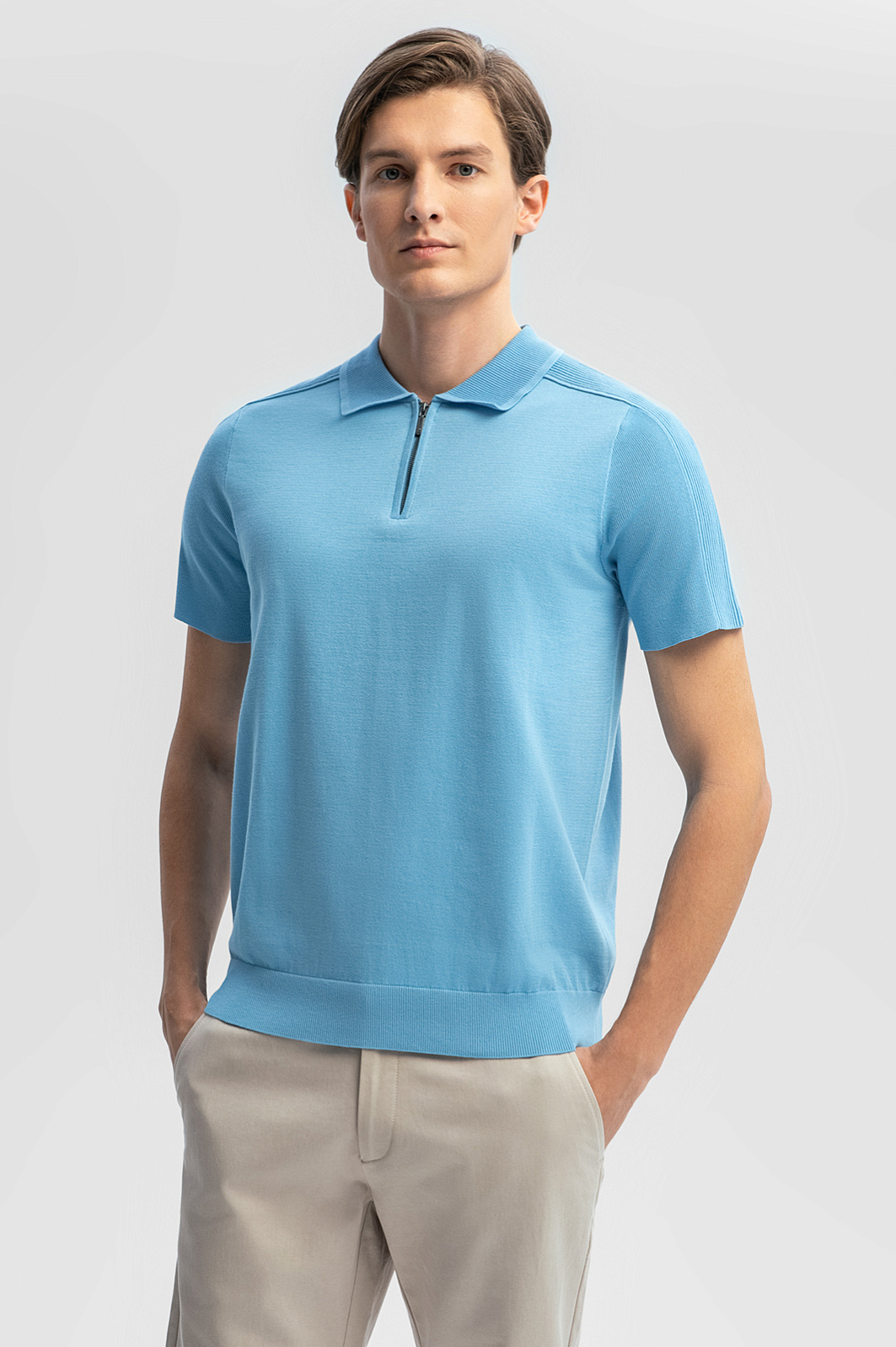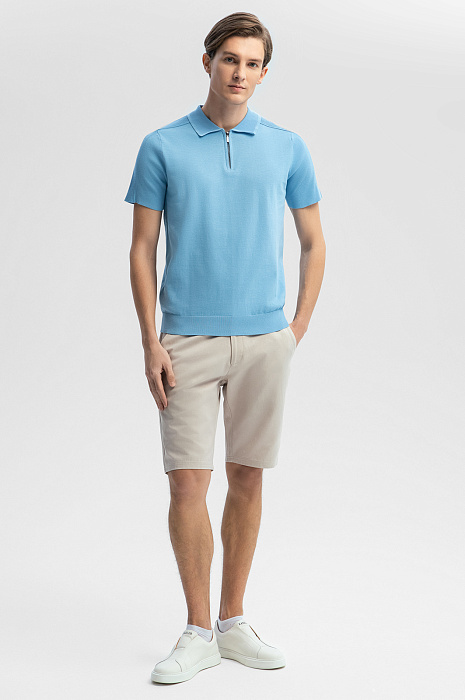 Небесно-голубое поло из 100% хлопка Пима — квинтэссенция элегантности и комфорта. Материал премиального качества высоко ценится за свою исключительную мягкость, шелковистую фактуру, долговечность и прочность. Изделия из Пима надолго сохраняют первоначальный цвет и форму. Воротник на молнии вносит современный акцент в классический дизайн, подчеркивая вашу индивидуальность. Голубой оттенок освежает и транслирует спокойствие и гармонию, легко сочетаясь с разными цветами в гардеробе. Комфортная посадка по фигуре, нежное прикосновение премиального материала и универсальный фасон вне времени – все, чтобы стать одним из любимых элементов гардероба, актуальных на протяжении многих сезонов. Параметры модели: рост 191, 97-77-99 Размер на модели: M