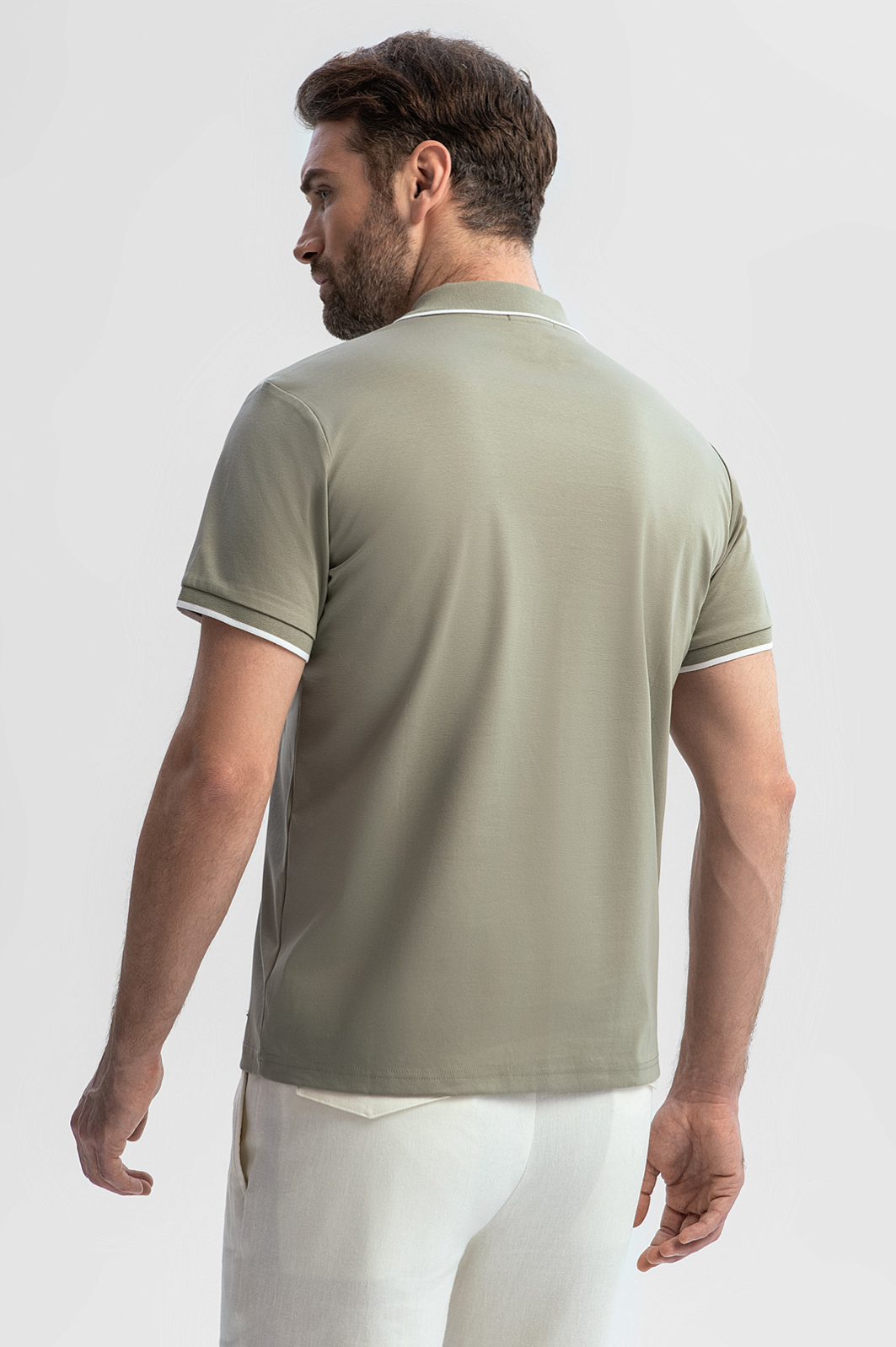 Поло KANZLER в оливковом оттенке – легкий способ создать безупречный образ как для активного дня, так и безмятежного отдыха. Секрет комфорта в любых обстоятельствах – в уникальном материале премиального качества. Мерсеризованный хлопок обладает шелковистой фактурой и сиянием, дарит коже ощущение прохлады и легко впитывает влагу. Ткань сохраняет цвет и форму даже после многократных стирок. Благородный оливковый оттенок добавляет образу сдержанной роскоши и лучше всего сочетается с базовыми, нейтральными цветами. Приталенный крой подчеркивает линию плеч и торса, сохраняя свободу движения. Сочетайте модель со светлыми брюками и замшевыми лоферами или дополните бермудами и кедами.