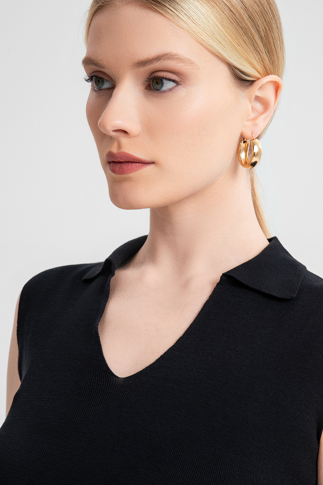 Изысканное поло KANZLER из 100% хлопка – универсальный выбор для классических и неформальных образов. Элегантный черный цвет и минималистичный крой создают идеальную базу для самых разнообразных сочетаний с брюками, юбками или шортами. Треугольный вырез и крой без рукавов подчеркивают линию шеи и плеч. Нежный материал из натуральных волокон хлопка дарит коже комфорт в течение всего дня, обеспечивая воздухопроницаемость и приятные тактильные ощущения. Модель устойчива к износу, легка в уходе и сохраняет форму и цвет надолго. Параметры модели: рост 175, 88-65-92 Размер на модели: S