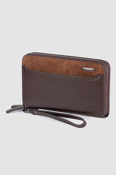 Клатч из натуральной кожи и замши, цвет коричневый, цена 12 990 руб., код 270862 - купить в Уфе в интернет-магазине KANZLER