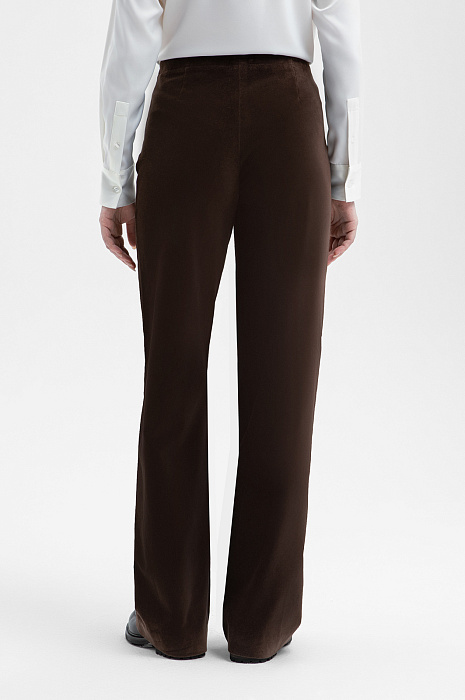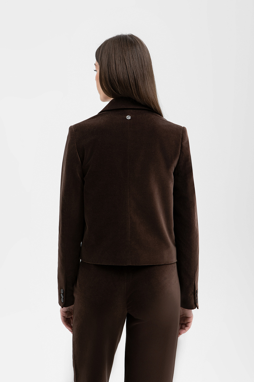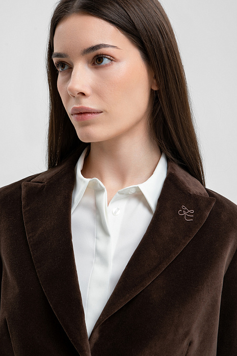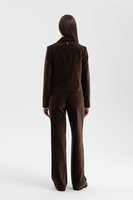 Стильный костюм KANZLER в глубоком шоколадном оттенке из бархатистой хлопковой ткани придаёт образу сдержанный интеллектуальный шик и уютность. Это практически готовый аутфит для деловых, вечерних выходов — встреч, походов в кино или ресторан. Пара составлена из укороченного пиджака на пуговице с прочной дышащей подкладкой и брюк умеренно свободного силуэта с боковыми карманами на невидимой молнии, которые не нарушают чистоту линий. Бархатистая фактура ткани придаёт ткани насыщенность и благородство. В составе материала — чистый гипоаллергенный хлопок, который поддерживает оптимальный микроклимат и отлично сохраняет форму.