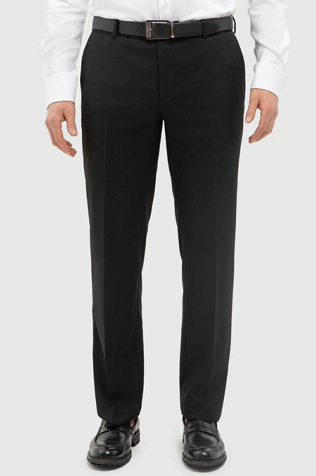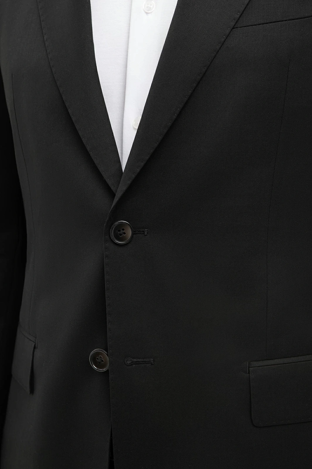 Черный однотонный костюм воплощает элегантность и идеально подходит для деловой встречи и торжественного вечернего мероприятия. Сочетание выверенного кроя и натуральной ткани, усиленной прочным синтетическим волокном, делает пиджак с узкими лацканами и брюки со стрелками максимально комфортными. Высококачественный материал на основе премиальной шерсти мериноса Супер 120S тактильно приятен и долговечен, а подкладка из вискозы добавляет еще больше комфорта в носке. Пиджак великолепно садится по фигуре, сохраняя четкость линий кроя и придавая уверенности в любой ситуации. Приталенный силуэт очерчивает фигуру, а английский воротник и гладкая фактура ткани с матовым финишем придают костюму аристократическую изысканность. Прямые брюки со стрелками завершат образ, подчеркивая вашу безупречность в каждом движении. Пиджак застегивается на пуговицы. Этот костюм станет вашим верным спутником, подчеркивая безупречный вкус и уверенность в себе, независимо от повода.