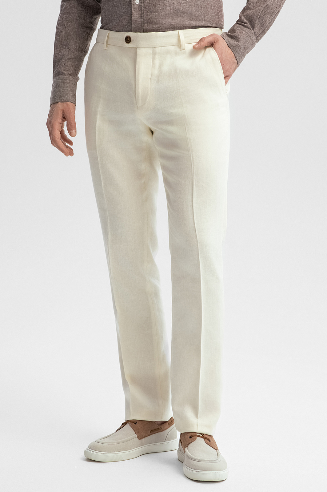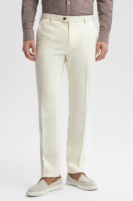 Роскошный костюм KANZLER изо льна и тенсела с двубортным пиджаком — идеальный вариант, чтобы с комфортом провести теплые летние дни в городе или на морском курорте. Облегченный пиджак без подкладки свободного кроя мягко облегает тело и не сковывает движений. Брюки слегка зауженного силуэта со стрелками добавляют образу изысканность и визуально удлиняют ноги. Природные волокна задают фактуру ткани. В составе гипоаллергенного материала — прочный гладкий лен, обладающий способностью охлаждать тело в жаркий день, и тенсел, который отводит лишнюю влагу и поддерживает свежесть.