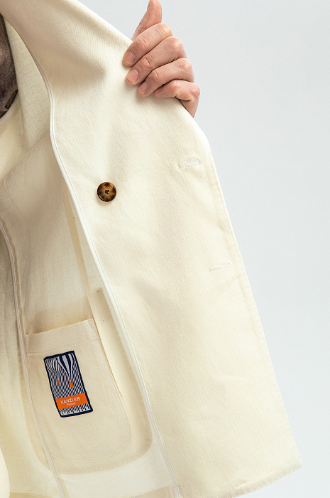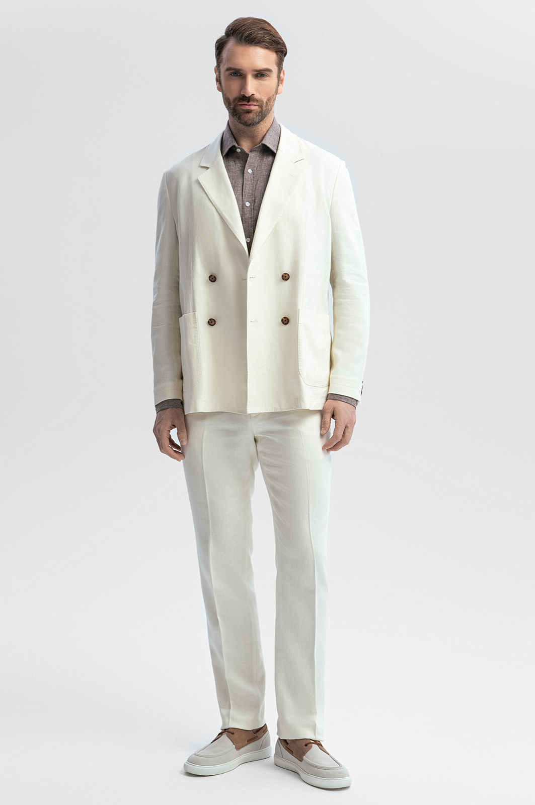 Костюм изо льна и тенсела с двубортным пиджаком, цвет белый, цена 30 384 руб., код - купить в Уфе в интернет-магазине KANZLER