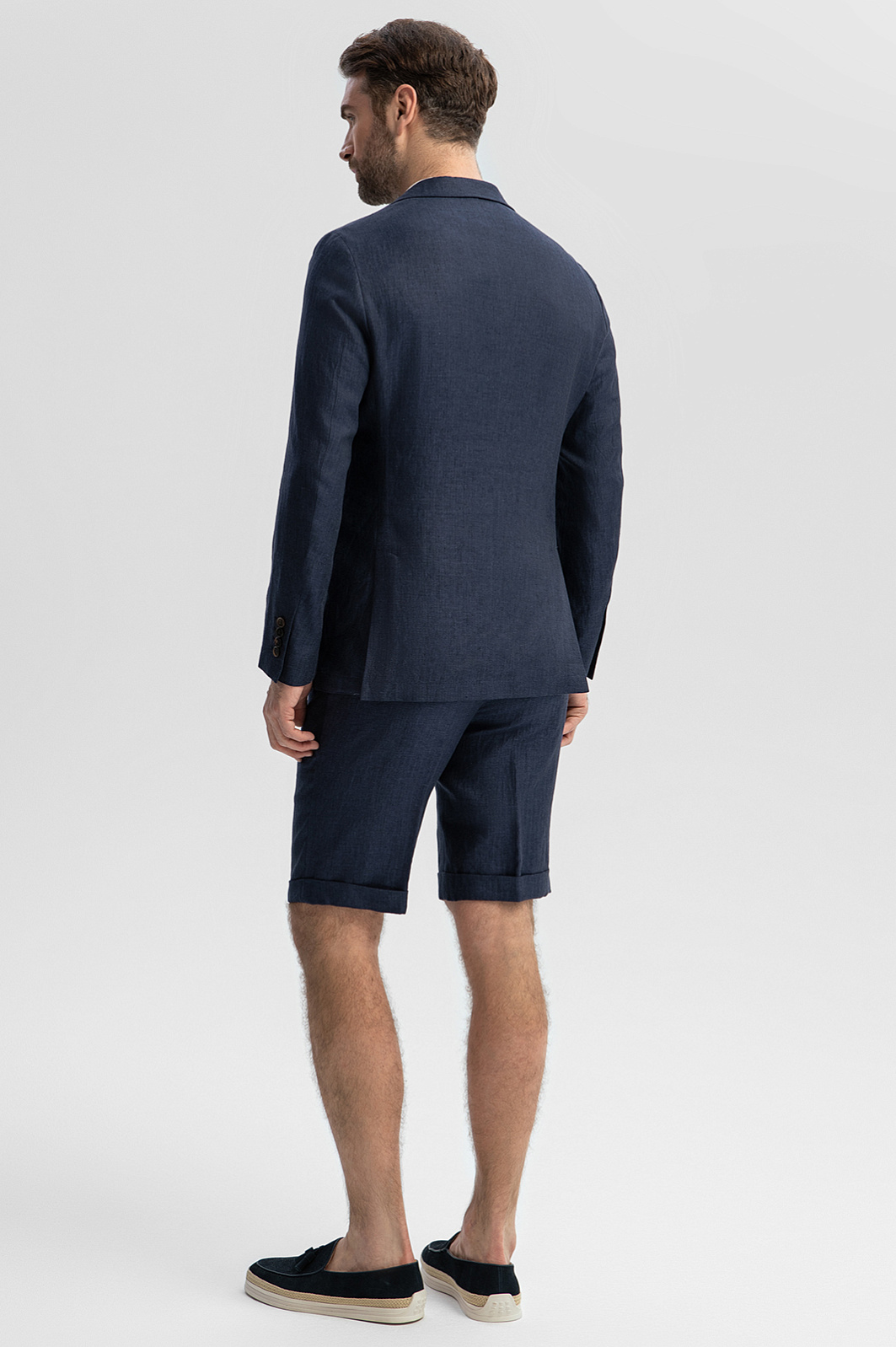 Мужской костюм продолжает эволюционировать, становясь все более удобным и приспособленным к современной жизни. И льняная двойка KANZLER глубокого синего оттенка с шортами — не исключение. Она состоит из изящного приталенного пиджака с акцентом на плечи и шортов с защипами, стрелками и небольшими отворотами, которые выглядят как укороченные офисные брюки. Роскошная ткань с классическим рисунком в «елочку» отвечает современным экотрендам и запросам на натуральность. 100-процентный лен — природный гипоаллергенный материал. Гладкие прочные волокна пропускают воздух и отводят влагу, поддерживая свежесть тела в жару.