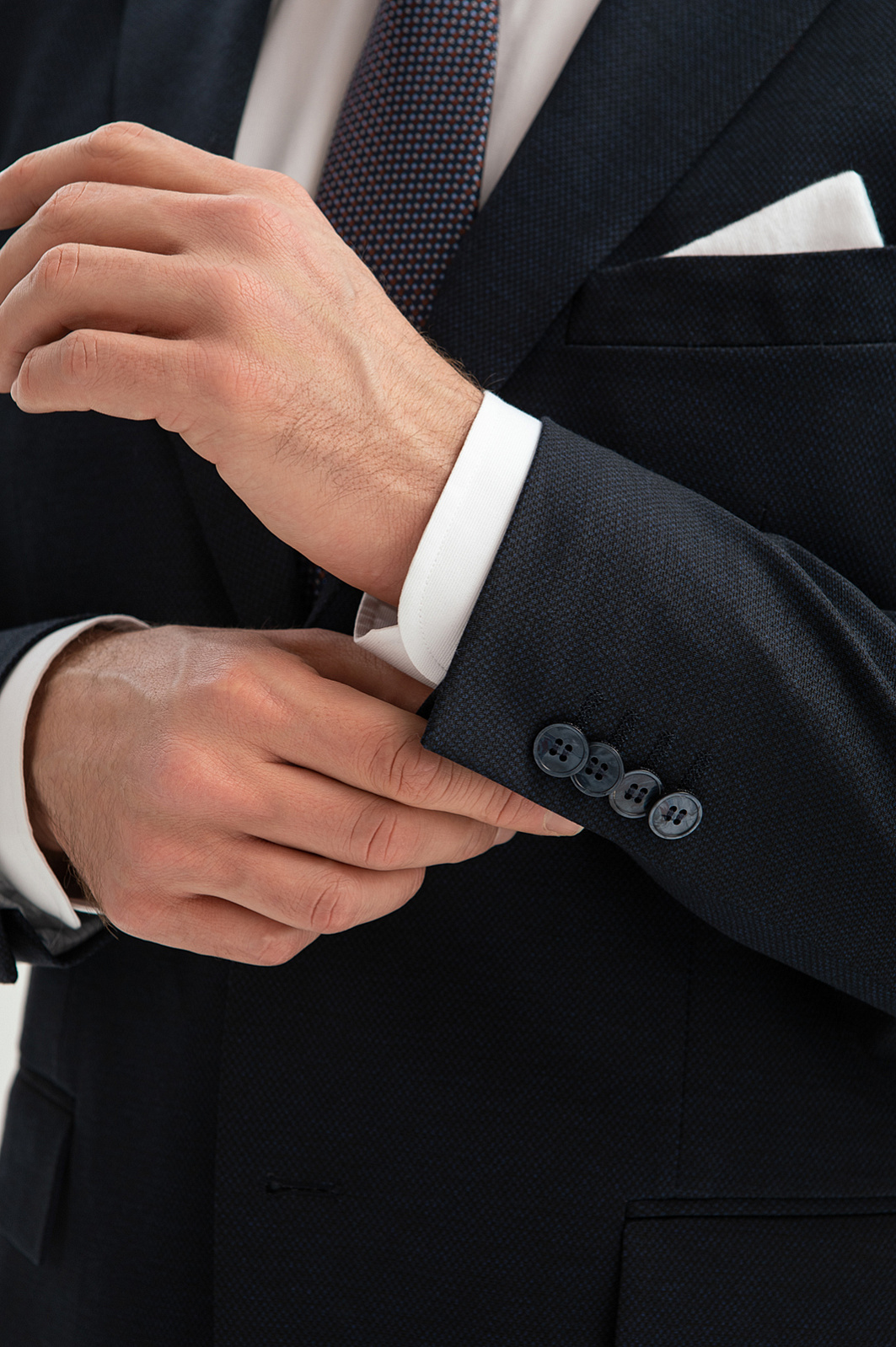 Костюм KANZLER глубокого темно-синего цвета — вариант для создания профессионального делового образа. В меру формальный, но при этом современный и практичный костюм из плотной смесовой ткани обеспечит безупречный вид в офисе. Пару классическому облегченному однобортному пиджаку с двумя шлицами сзади и карманами с клапанами составляют удобные брюки на кулиске. Слегка зауженный силуэт стройнит и добавляет элегантности. Технологичная ткань костюма состоит из волокон трех видов. Она хорошо держит форму и отличается прочностью, устойчивостью к образованию складок и неприхотливостью в уходе.
