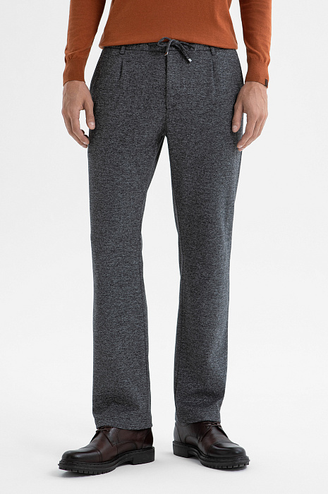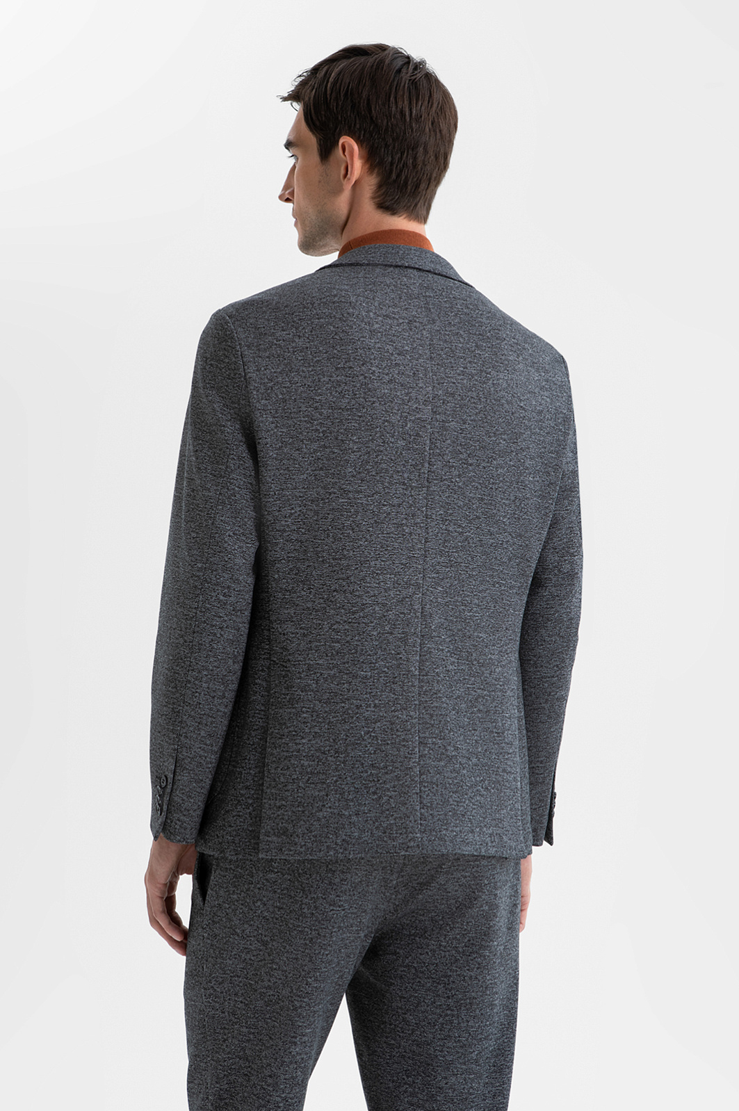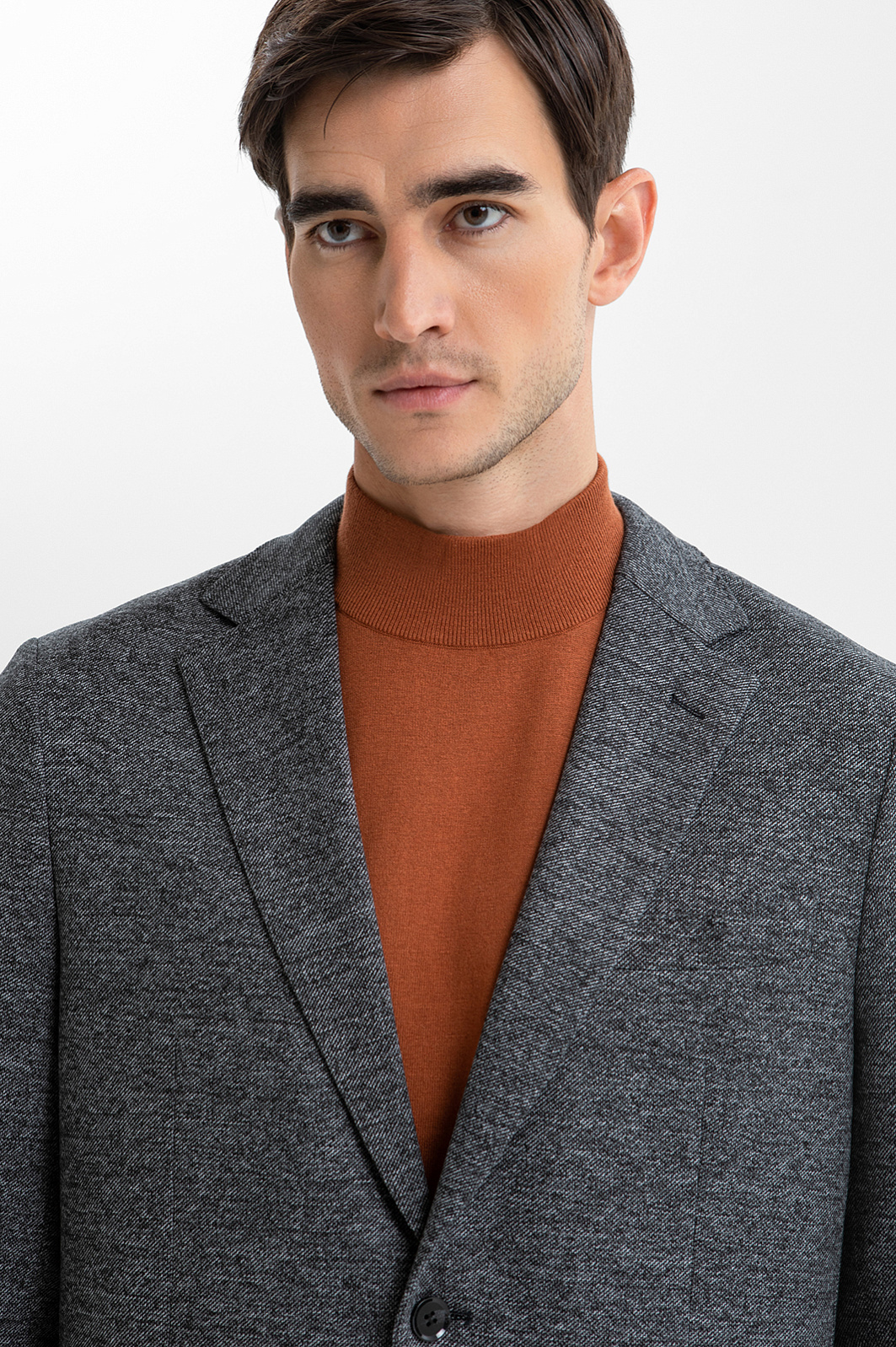 Костюм-двойка KANZLER из серой смесовой ткани с эффектом меланжа — современная классика без лишней строгости. Удобная повседневная модель составлена из однобортного слегка приталенного пиджака с естественной линией плеча и слегка зауженных брюк с кулиской и легкими защипами, которые обеспечивают комфортную посадку для любой комплекции. Материал пиджака — современная технологичная смесовая ткань в плотный диагональный рубчик. Состав из прочного полиэстера и дышащего района с добавлением эластичного спандекса делает её комфортной, лёгкой в уходе и готовой к любым испытаниям долгого дня в офисе.