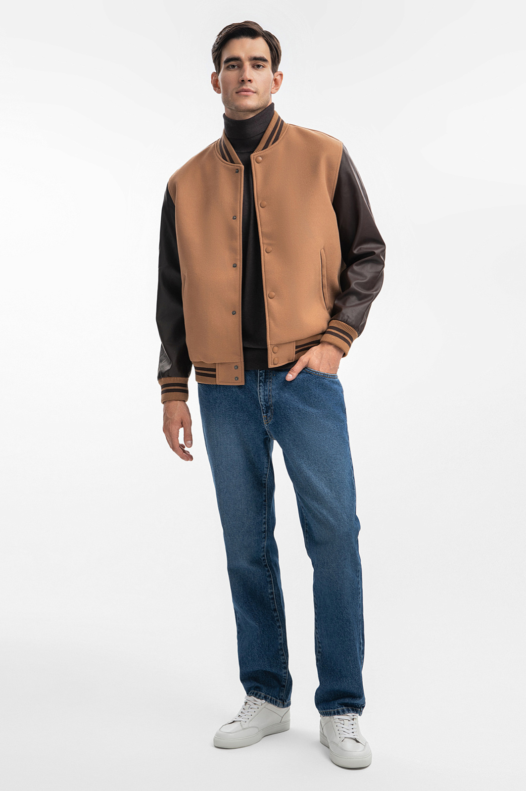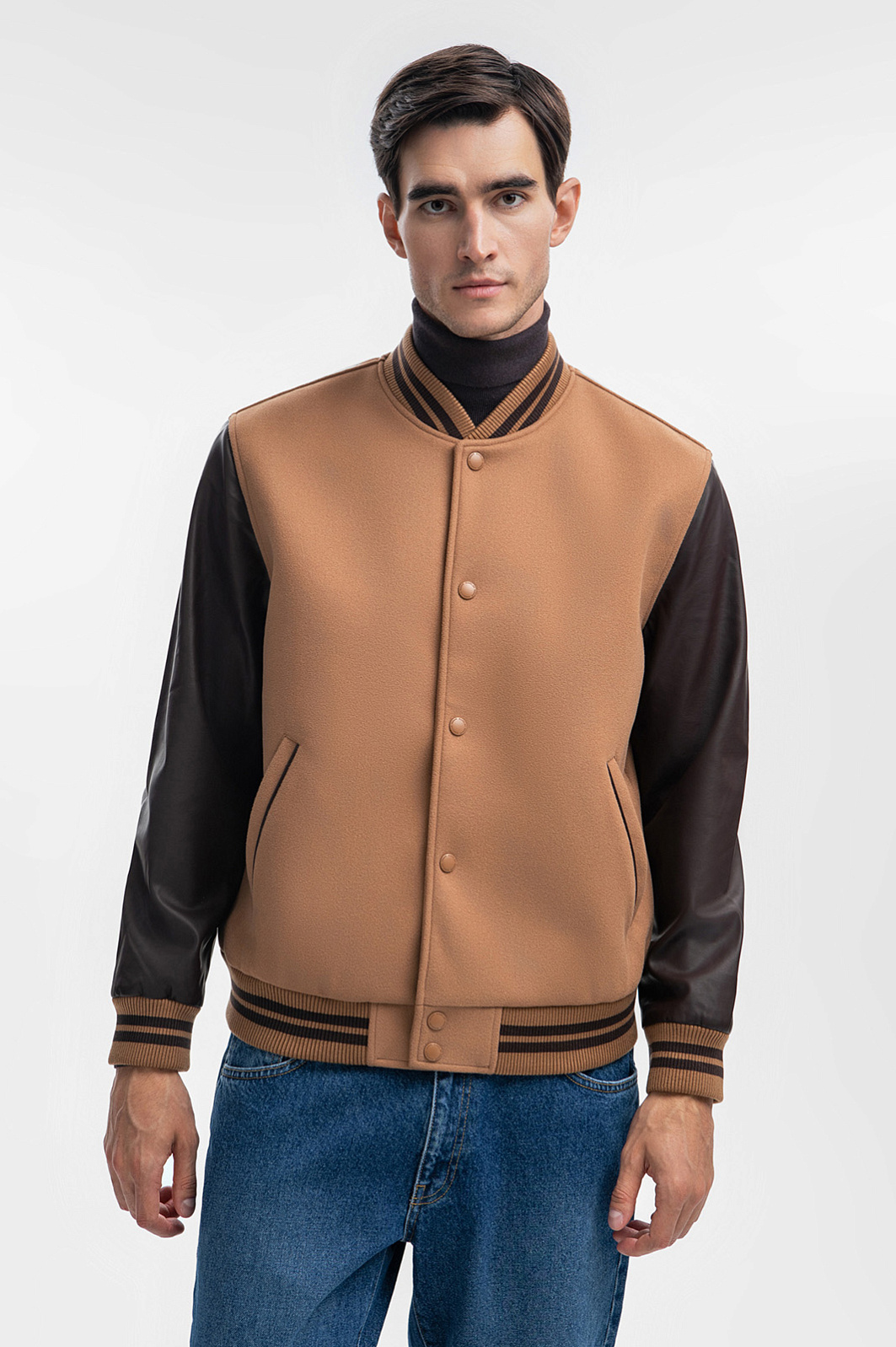 Новый сезон от KANZLER — свежий взгляд на силуэт, цвет и сочетание материалов. Представляем бомбер в самых актуальных оттенках этой осени: ореховом и горького шоколада. Трендовый цвет, трикотажные манжеты, застежка на кнопках, невысокий воротник-стойка и контрастные рукава — бомбер, который идеально дополнит повседневный мужской гардероб. Собирать комплекты с ним очень просто - благодаря своему дизайну модель сама по себе смотрится как завершенное произведение, добавляя нужные акценты образу. Наши стилисты советуют носить его с классическим темно-синим денимом и водолазкой, джоггерами и толстовкой. Параметры модели: рост 192, 101-76-97 Размер на модели: 50
