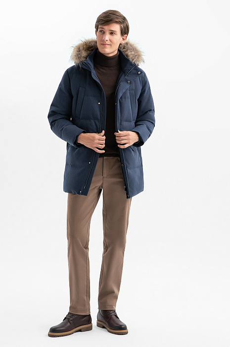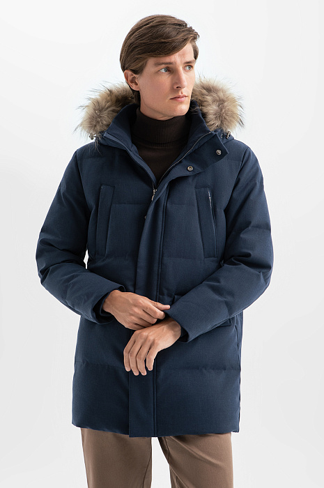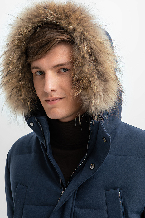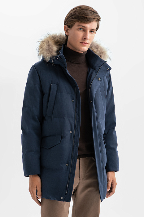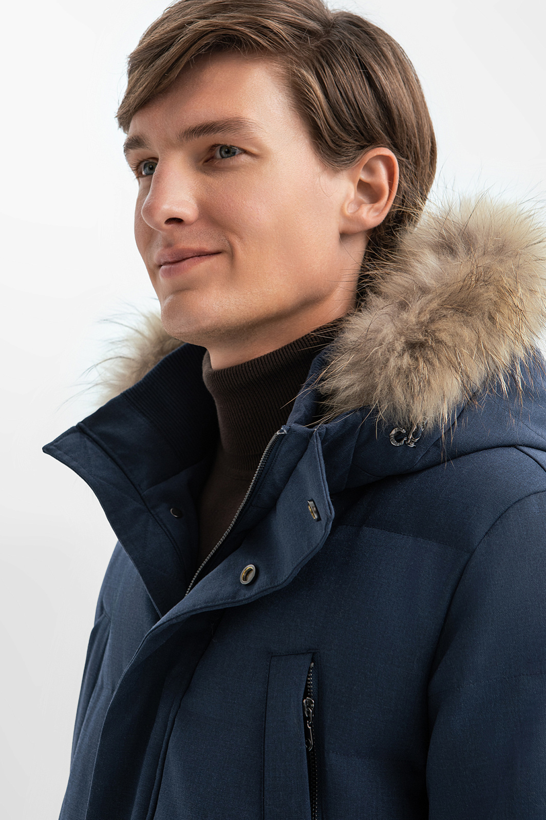 Куртка с натуральным мехом и водоотталкивающей обработкой, цвет синий, цена 24 990 руб., код 268239 - купить в Уфе в интернет-магазине KANZLER