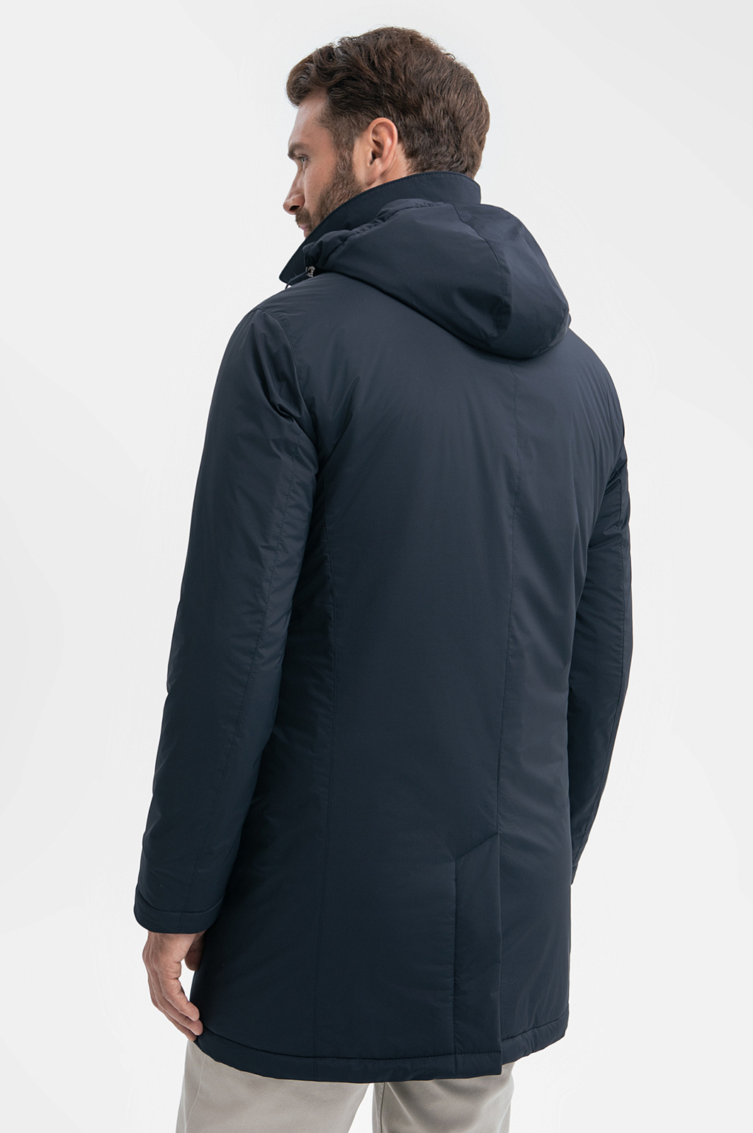 Удлиненная демисезонная куртка KANZLER в глубоком и благородном синем оттенке – идеальное сочетание элегантности и функциональности. Водоотталкивающая обработка избавит от забот о внезапных осадках, а капюшон надёжно защитит от ветра. Материал куртки, состоящий из 87% полиамида и 13% эластана, придаёт изделию прочность, лёгкость и эластичность, а подкладка и наполнитель из полиэстера дарят комфорт и тепло. Идеальная посадка и стильный силуэт делают куртку незаменимой для любого случая, будь то прогулка по городу или деловая поездка. Эта модель станет ключевым элементом гардероба для межсезонья. Параметры модели: рост 189, 102-80-99 Размер на модели: 50