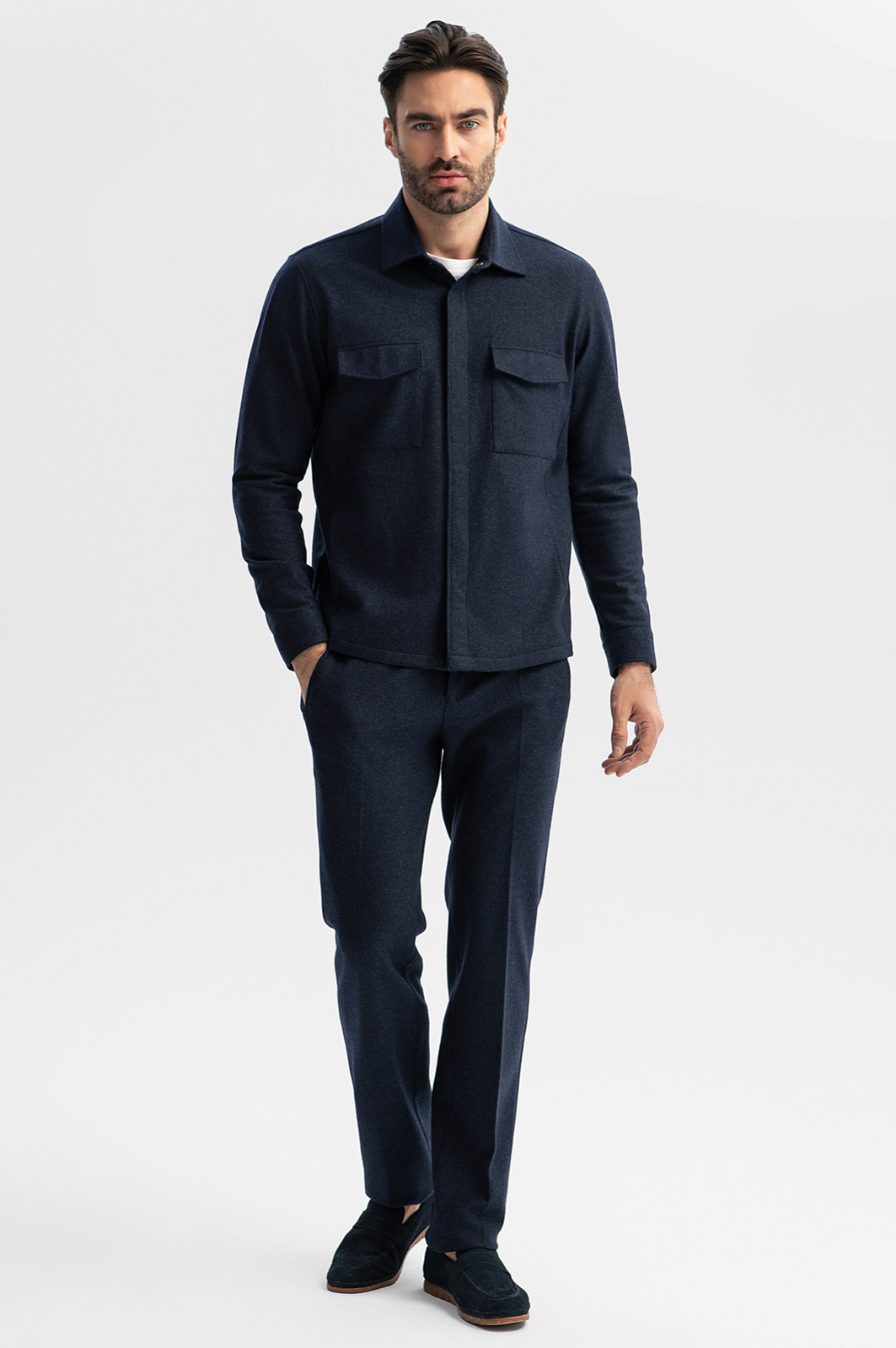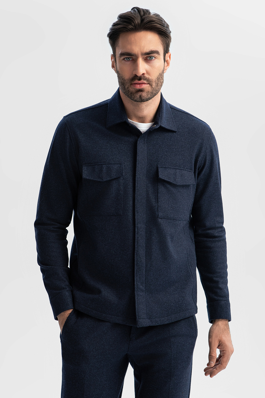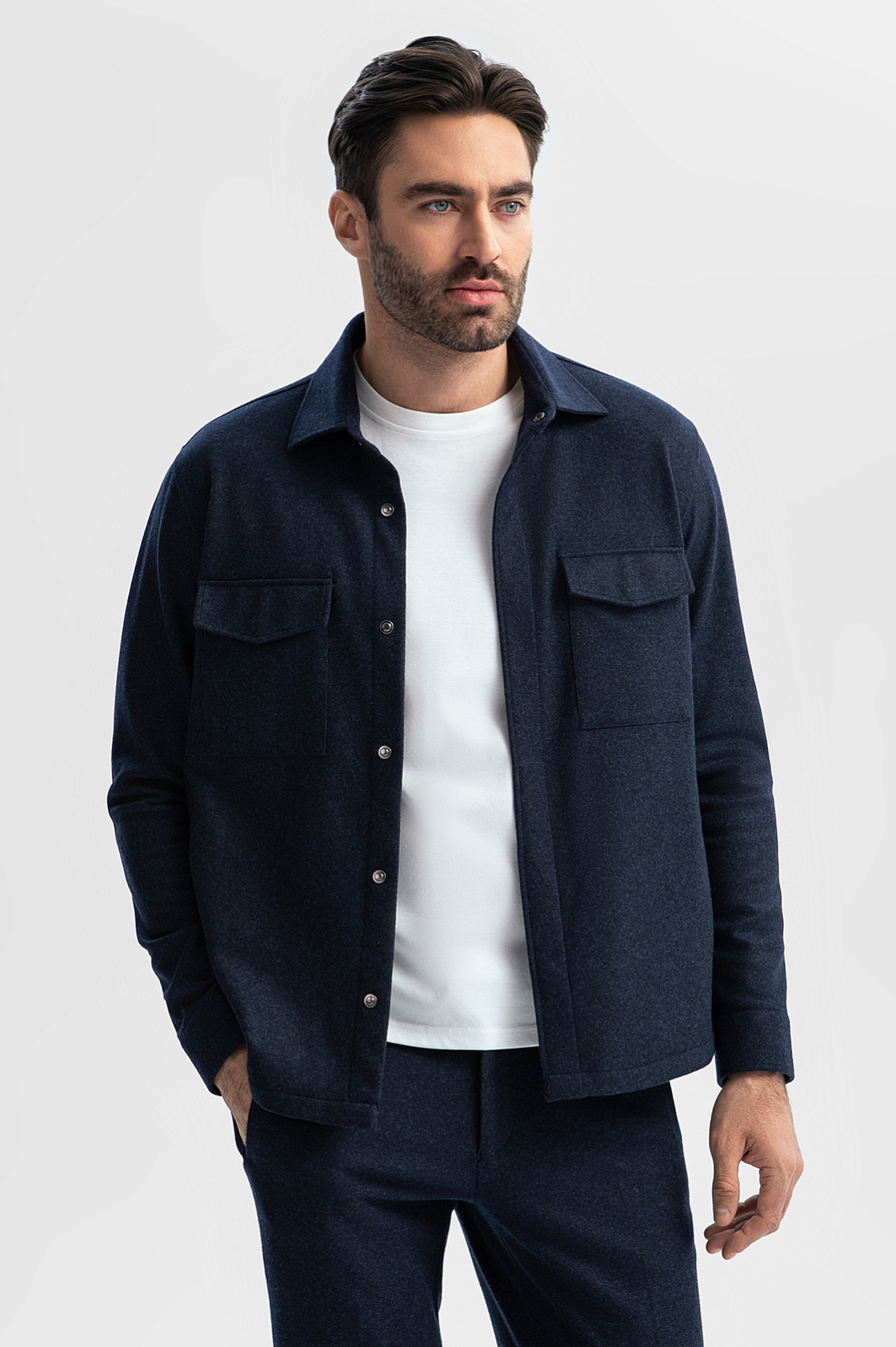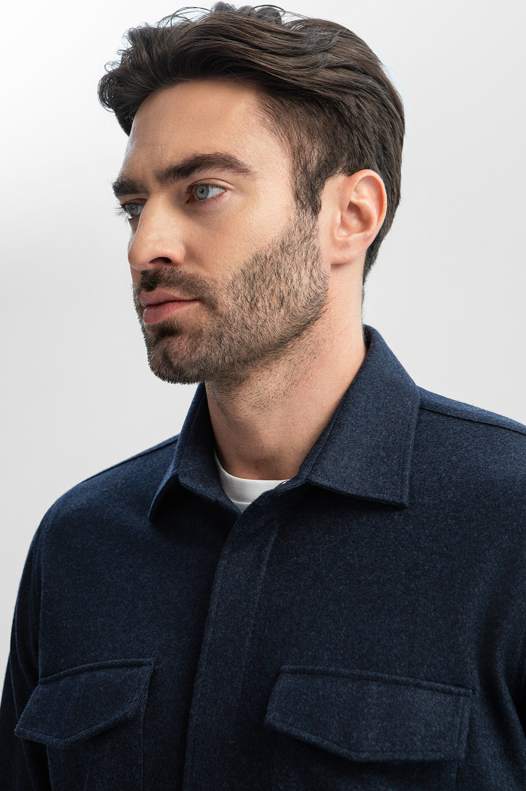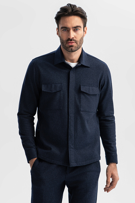 Куртка-рубашка из итальянской шерстяной ткани Vitale Barberis, лимитированная коллекция, цвет синий, цена 26 990 руб., код 269369 - купить в Уфе в интернет-магазине KANZLER