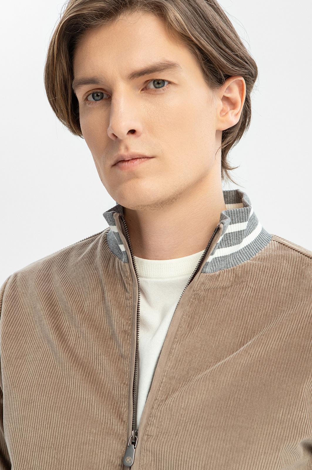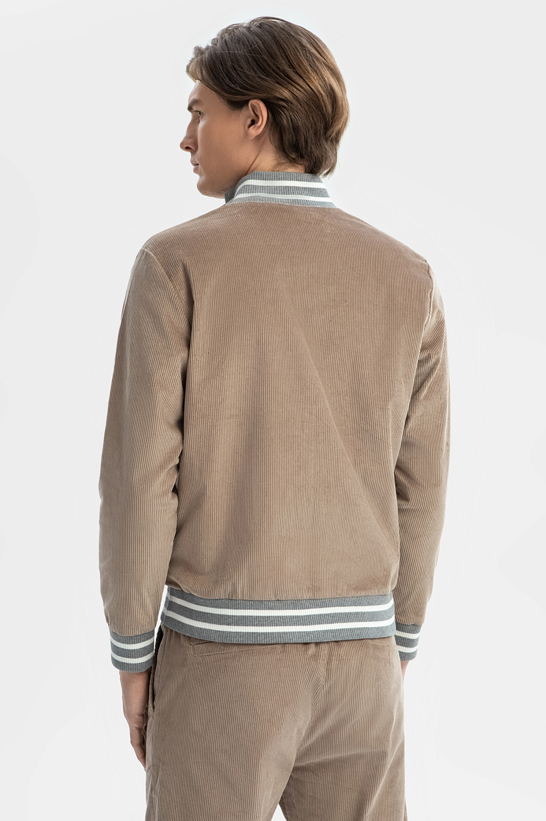 Роскошный песочно-бежевый вельветовый бомбер KANZLER из лимитированной коллекции адресован любителям непринужденного стиля, который сочетает комфорт и современную эстетику. Светло-серые трикотажные резинки с белыми полосками придают модели легкость и спортивных шик. Для прогулки по городу куртку можно дополнить джинсами, для уик-энда — вельветовыми брюками KANZLER того же оттенка. Мягкий вельвет произведен лидером в создании премиальных тканей из хлопка — мануфактурой Duca Visconte di Modrone (Италия). Материал состоит из гипоаллергенных воздухопроницаемых натуральных волокон, которые поддерживают свежесть тела, сохраняют тепло в холодную погоду и охлаждают в жару. Параметры модели: рост 191, 97-77-99 Размер на модели: 50