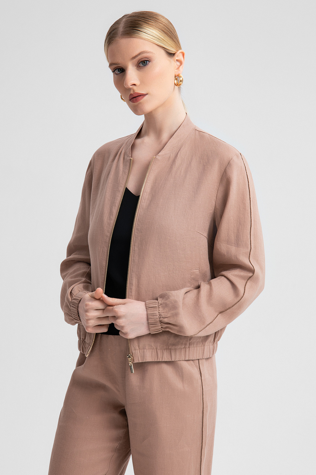 Бомбер изо льна, цвет пудровый, цена 12 990 руб. - купить в интернет-магазине KANZLER