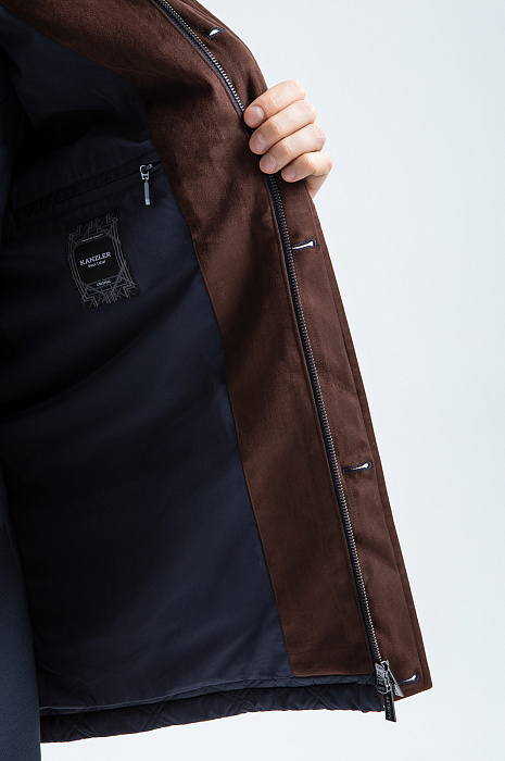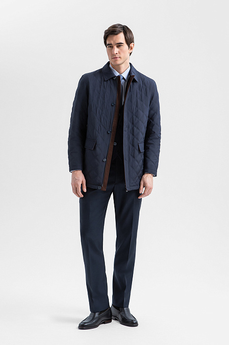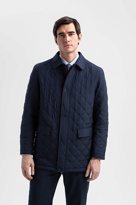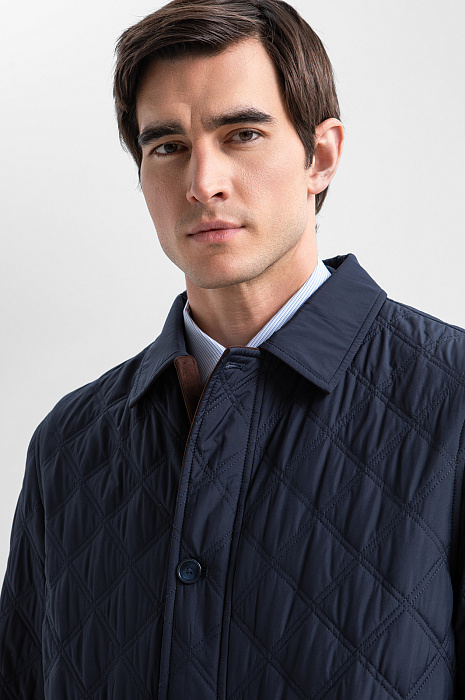 Стёганая куртка KANZLER глубокого синего оттенка — воплощение практичности, функциональности и выверенной эстетики. Спокойная, надёжная и по-настоящему стильная модель подходит для повседневных дел в городе — от встреч до вечерних прогулок. Прямой крой и удобная длина не сковывают движения. Стёганый ромбовидный узор отсылает к классике английского стиля. Коричневый подборт добавляет образу теплоту и благородство, а планка с пуговицами, прикрывающая центральную молнию, — лёгкий ретро-акцент. Материал — долговечная непродуваемая ткань из полиэстера с водоотталкивающей обработкой, которая надёжно защищает от дождя и ветра.