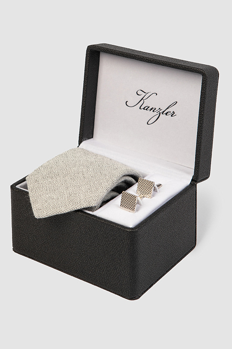 Подарочный набор (галстук + запонки), цвет серый, цена 4 990 руб., код 268130 - купить в Уфе в интернет-магазине KANZLER