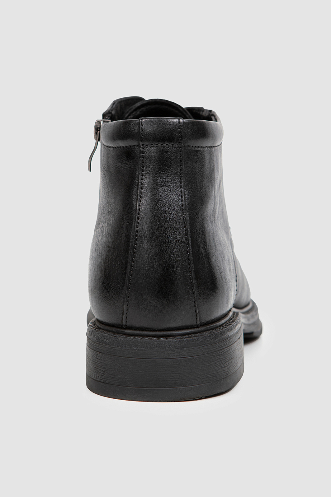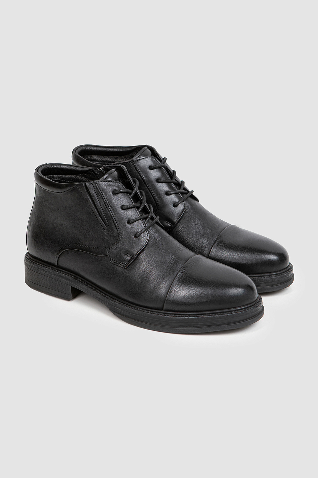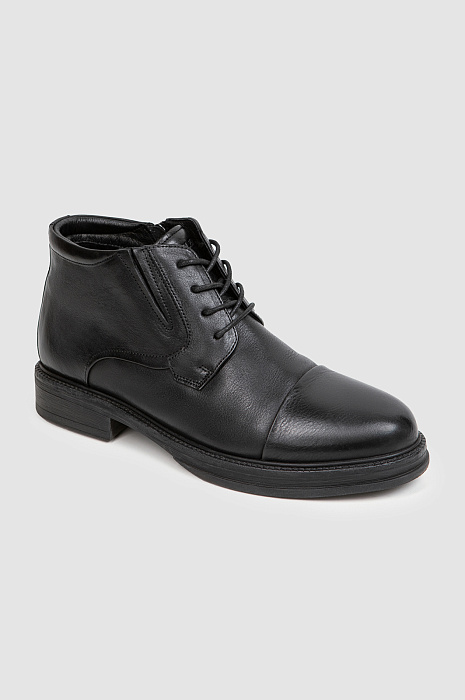 Благодаря сочетанию фактур и тщательно выверенным деталям ботинки KANZLER из натуральной чёрной кожи выглядят достойно, лаконично и выразительно. Идеальный выбор для тех, кто ценит удобство и сдержанный шик, уместный как в деловом, так и в повседневном образе. Традиционный дизайн с округлым носком и отрезным мыском из полированной кожи придает паре элегантность. Боковая молния облегчает надевание, сохраняя чистоту силуэта. Внутренняя подкладка и стелька из мягкой микрофибры обеспечивают стопе комфорт на протяжении всего дня. Гибкая износоустойчивая резиновая подошва придаёт уверенность каждому шагу.