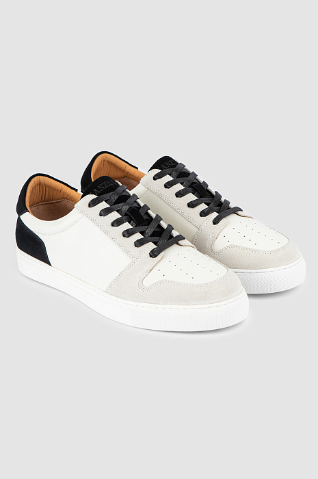 Кеды KANZLER из натуральной кожи и замши – идеальный баланс стиля, функциональности и премиального качества для активных мужчин. Комбинация белой кожи и серой замши с черными акцентами – язычком и шнурками – стильный и актуальный дизайн, позволяющий сочетать модель со множеством элементов гардероба. Подкладка и стелька из натуральной кожи заботятся о комфорте ваших ног, обеспечивая отличную вентиляцию и мягкость. Резиновая подошва придаёт устойчивость и долговечность, делая модель идеальной для активного образа жизни. Кеды станут фаворитом в гардеробе, подчеркивая ваше стремление к качеству и индивидуальность.
