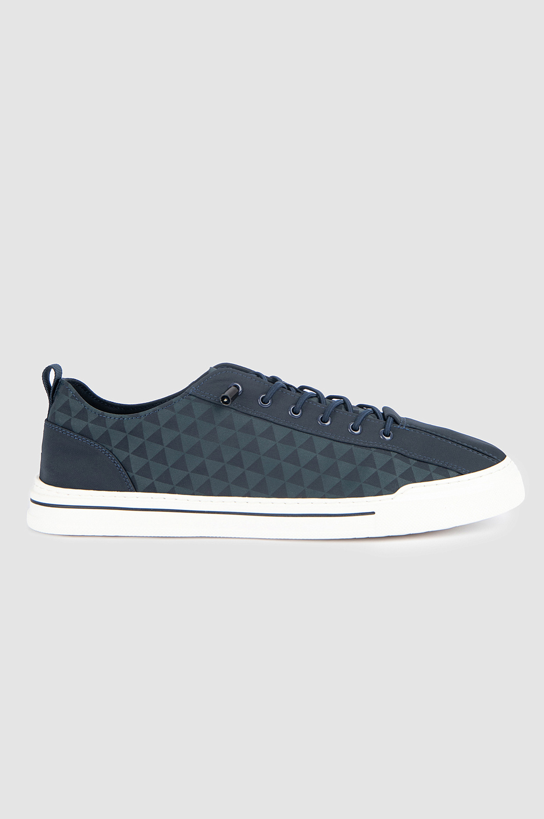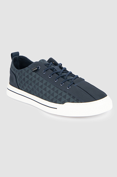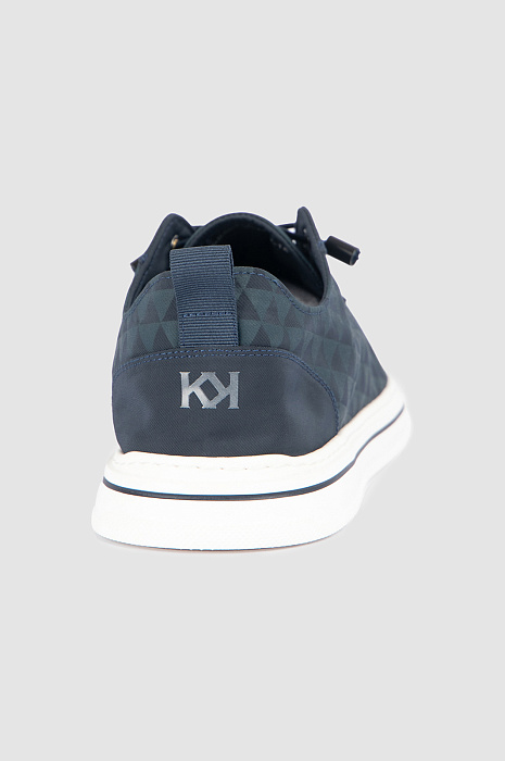Кеды KANZLER из синего текстиля созданы для жителя мегаполиса. Это стильная комфортная городская обувь с актуальным дизайном, графичным паттерном и оригинальной шнуровкой. Удобная пара позволяет динамично перемещаться по городу и будет уместна в офисе, на прогулке, в поездке и путешествии. Верх и стелька сделаны из прочного текстиля. Слегка утолщенная белая подошва с тонкой синей полоской — из плотной упругой резины, которая амортизирует шаг. Петелька на пятке служит для удобства при надевании.