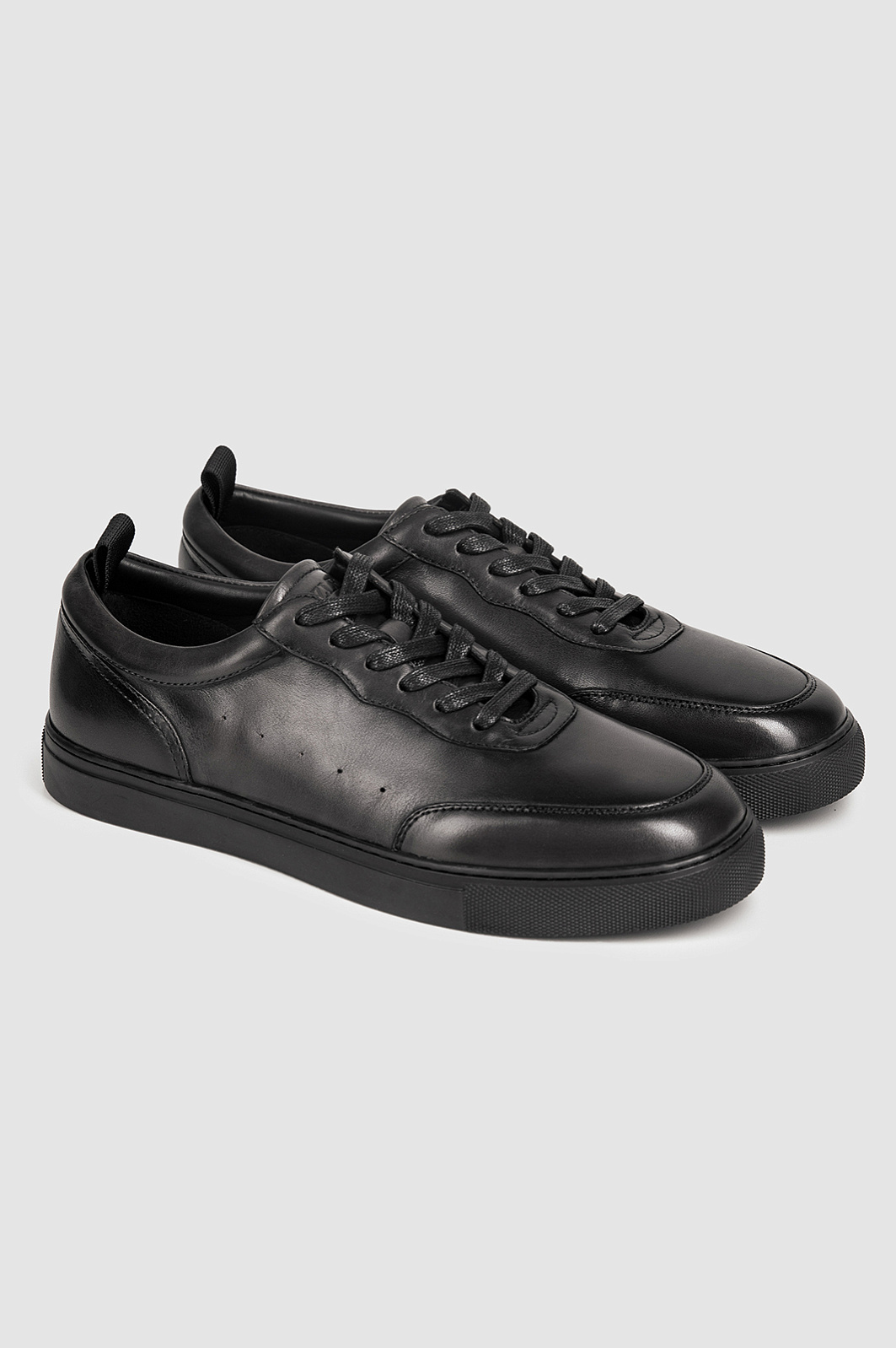 Сделайте шаг к своей настоящей жизни — новым возможностям, достижениям и увлечениям. Черные сникерсы KANZLER из гладкой натуральной кожи — обувь в современном городском стиле, которая идеально впишется в гардероб жителя мегаполиса. Функциональный дизайн сочетает современные и классические элементы. Кожный верх адаптируется к форме стопы, пропускает воздух и со временем становится только мягче и удобнее, обеспечивая индивидуальную посадку. Толстая подошва из резины защищает ноги от перепадов температур и позволяет сохранять устойчивость в любых погодных условиях.