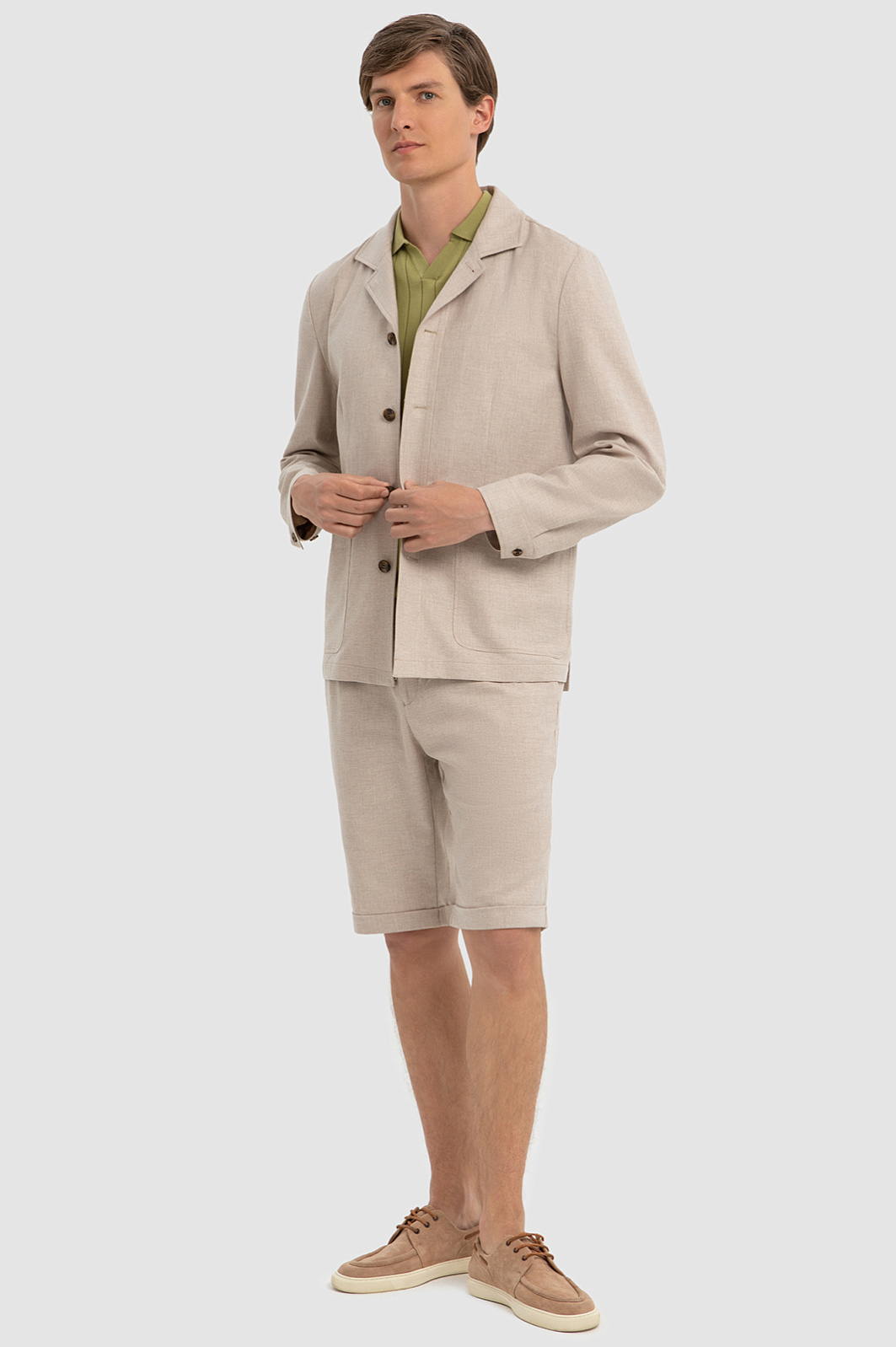 Свободная модель в песочном оттенке подошла бы касту легендарных «Наследников». Легкий пиджак KANZLER из хлопка и льна следует традициям «тихой роскоши», которая негромко проповедует комфорт и спокойную цветовую гамму. Идеальный вариант для неспешного расслабленного отдыха и путешествий. Крой с элементами рубашечного стиля не сковывает движений и обеспечивает великолепную посадку на фигуре любого типа. Роговые пуговицы служат деликатным акцентом и добавляют ретро-шарма. Роскошная натуральная невесомая ткань мягко облегает тело. Материал из хлопка и льна призван сохранять свежесть. Воздушный хлопок защищает от зноя и прохлады, а волокна льна слегка охлаждают кожу и отводят влагу. Параметры модели: рост 191, 97-77-99 Размер на модели: 50