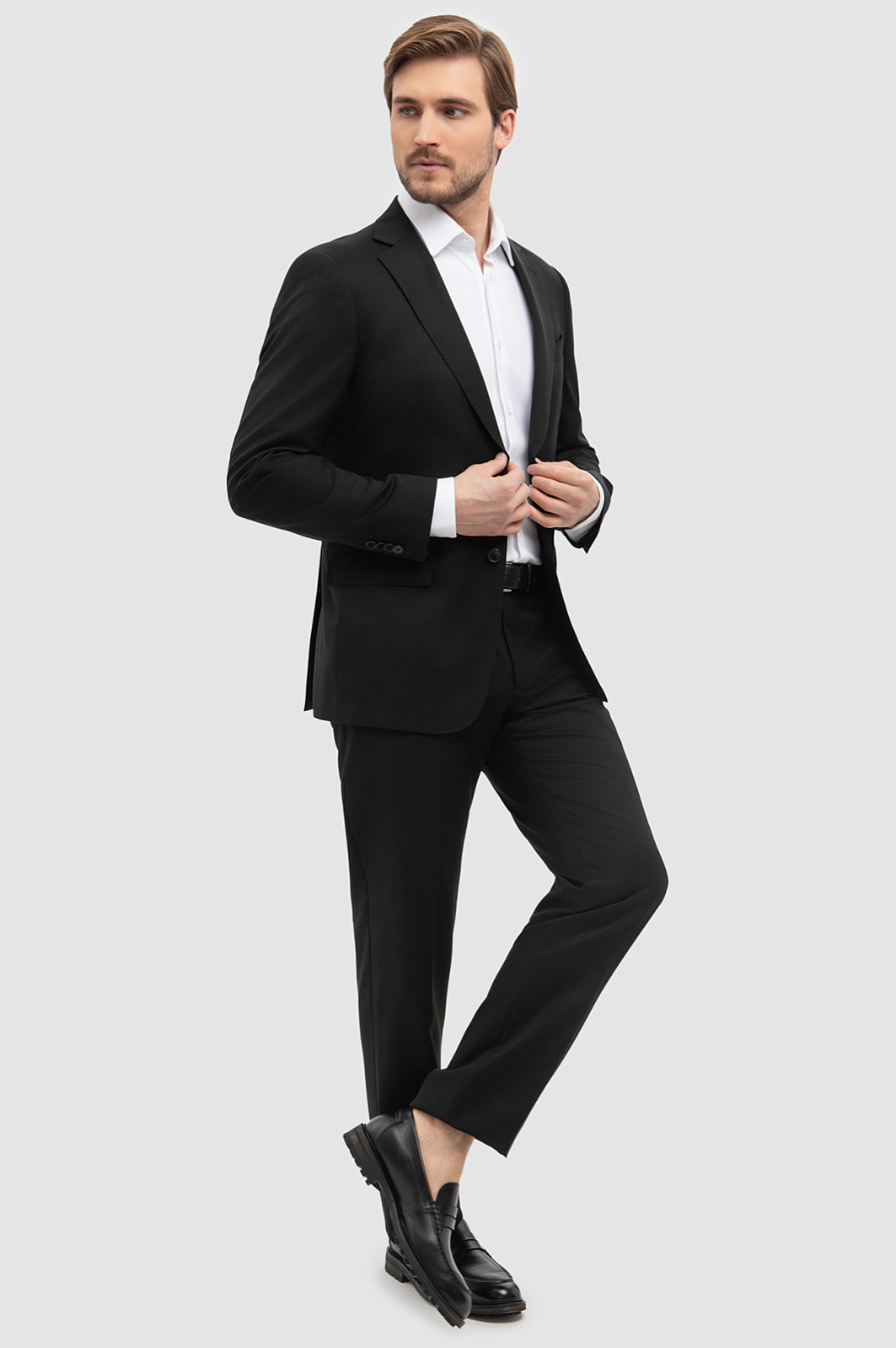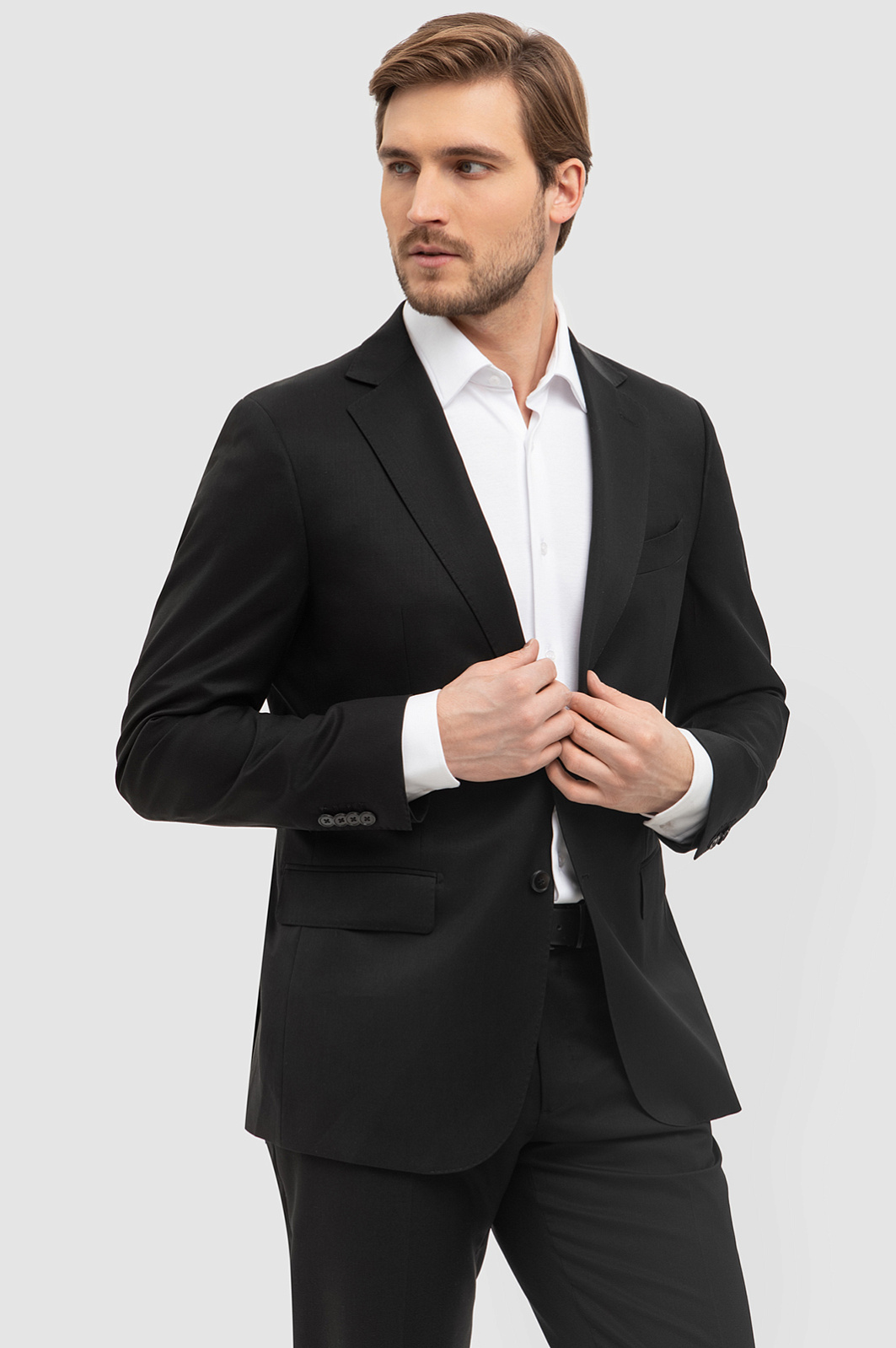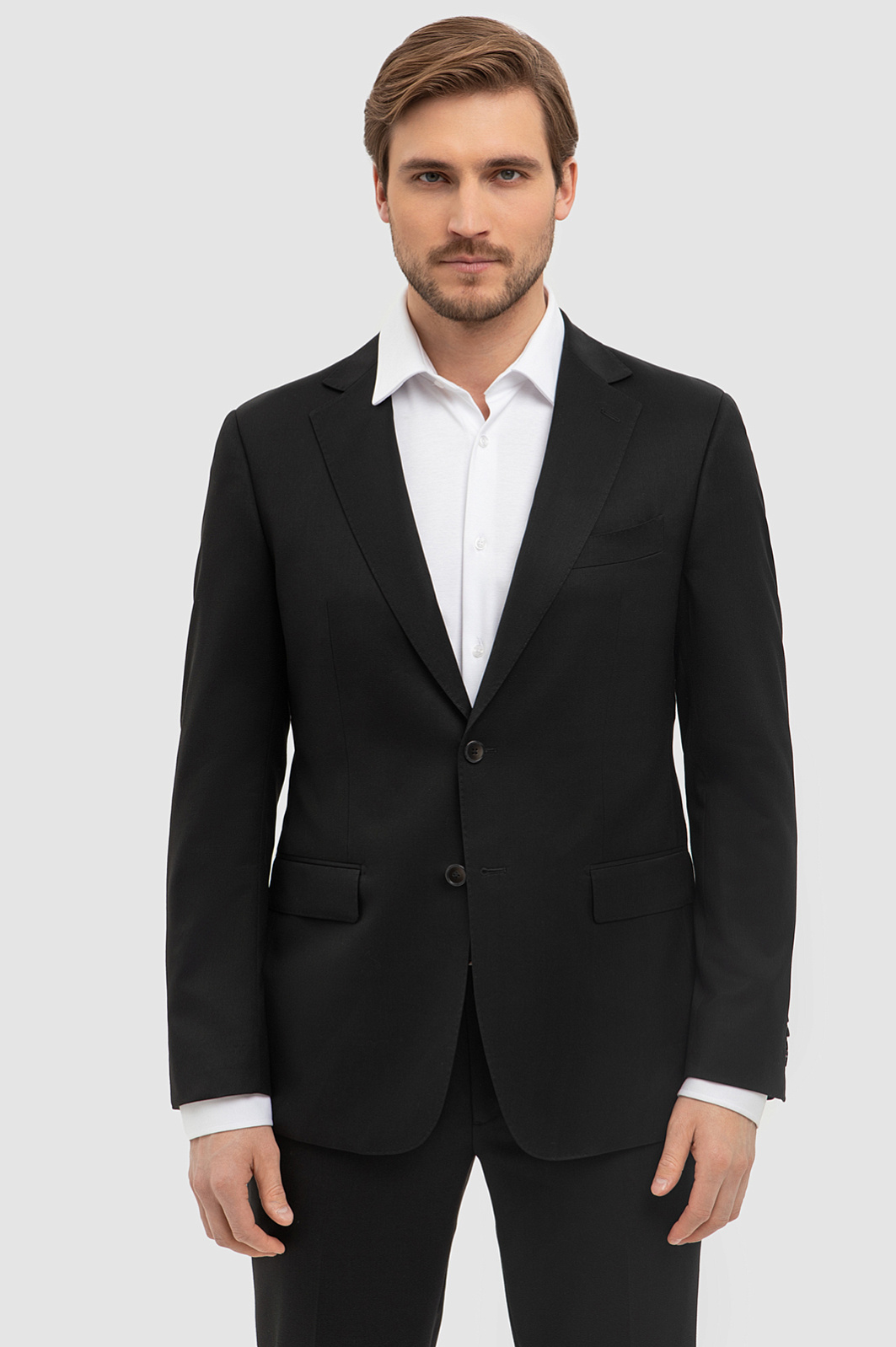 Для создания классического однобортного пиджака выбрали плотный смесовый материал премиального качества. Натуральная шерсть Супер 120S обеспечивает отличную воздухопроницаемость и мягкость, а синтетические волокна помогают пиджаку сохранять форму и долговечность. Эта комбинация обеспечивает оптимальный баланс между комфортом изделия и износостойкостью. Детали пиджака вырезаны с архитектурной точностью и сконструированы по проверенным лекалам, что обеспечивает идеальную посадку и легкость движений. Полуприталенный Приталенный крой подчеркивает фигуру, создавая элегантный силуэт, а английский воротник и базовый черный цвет придает модели классический строгий вид - оптимально для деловых встреч и официальных мероприятий. Наши стилисты советуют сочетать пиджак KANZLER с классическими брюками и белой рубашкой. Параметры модели: рост 187, 100-81-97 Размер на модели: 50