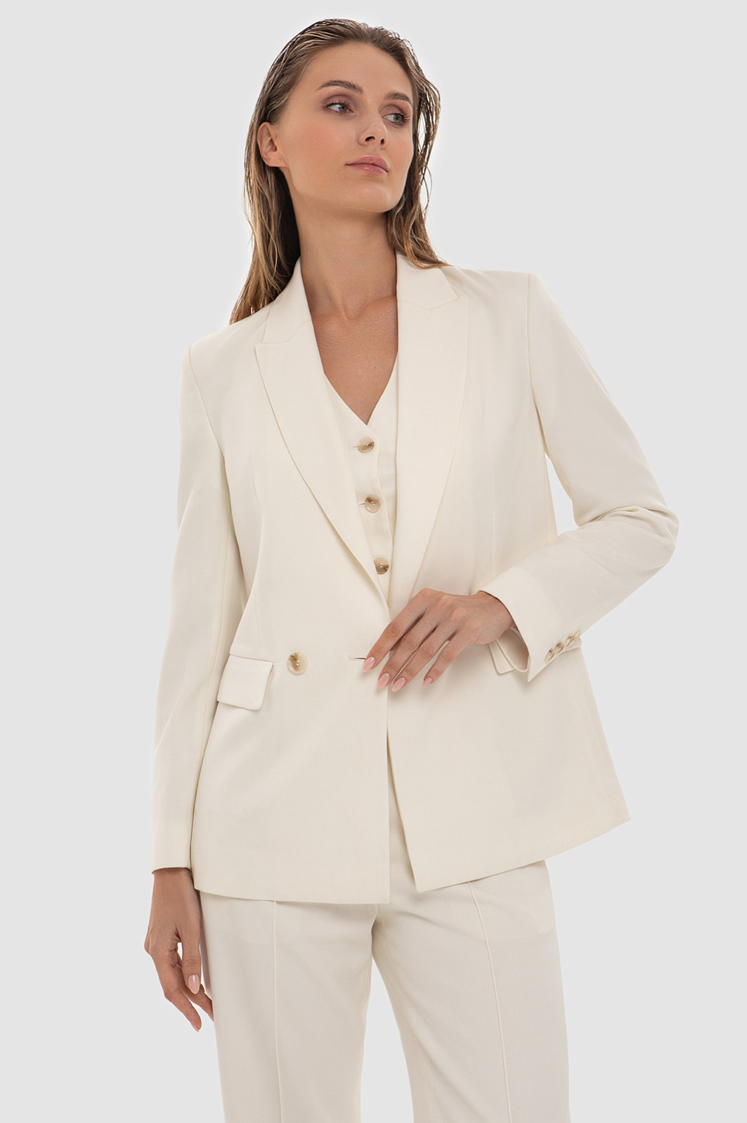 Пиджак из смесовой шерсти белого цвета, цвет светло-бежевый, цена 10 990 руб. - купить в интернет-магазине KANZLER