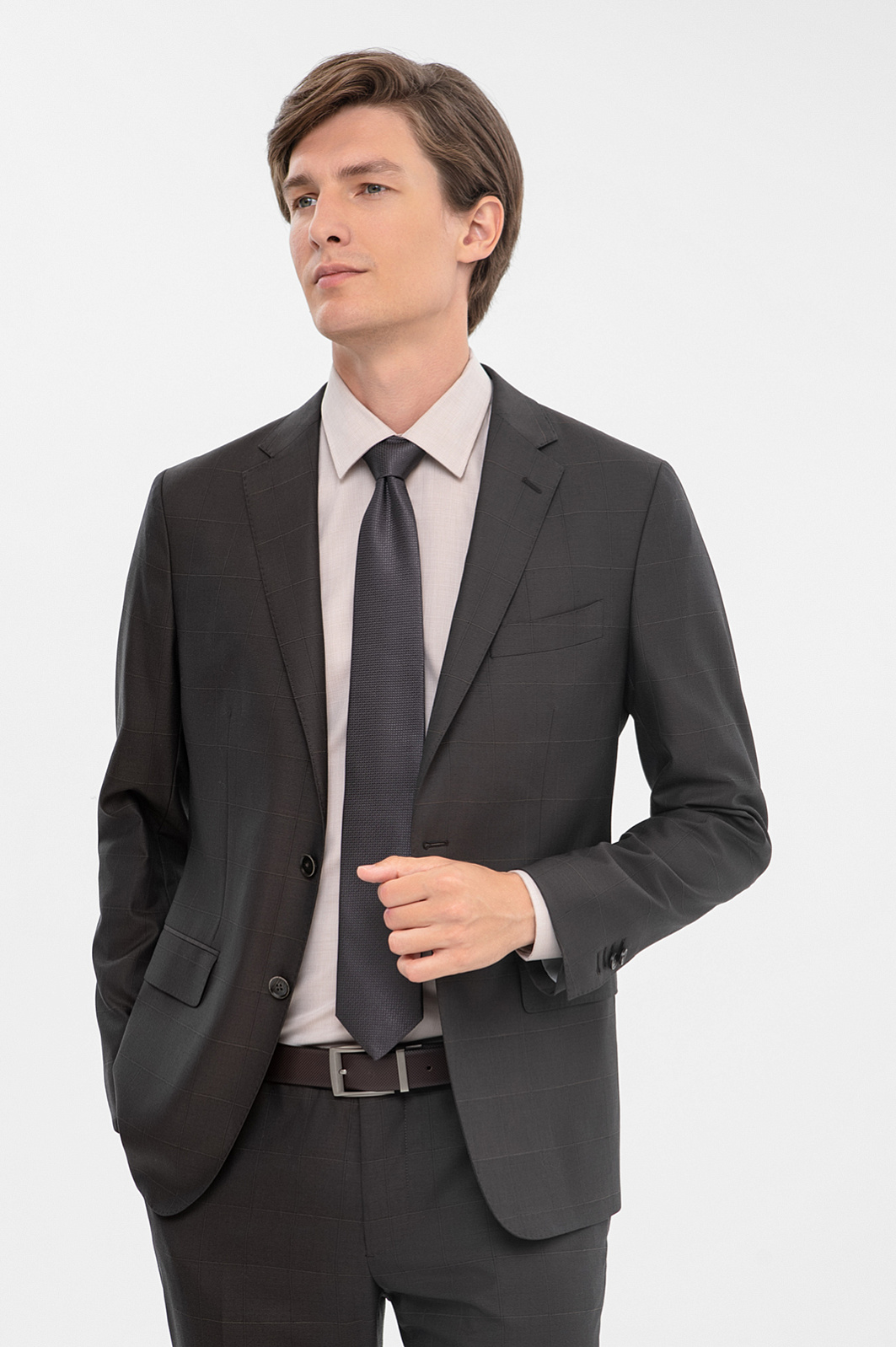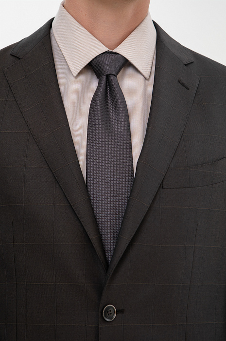 Приталенный пиджак в клетку — классика, которая подойдёт для любого делового или торжественного случая. Изготовленный из 100% шерсти Супер 140S, пиджак обладает исключительными характеристиками: он мягкий, лёгкий и невероятно комфортный в носке. Шерсть Супер 140S отличается тонкостью волокон и отличной терморегуляцией. Но самое главное преимущество изделие - уникальная обработка ткани и устойчивость изделия сминанию, что делает пиджак универсальным для любого случая и дальних поездок. Глубокий оттенок с лёгким блеском ткани придаёт модели утончённость. А едва заметный принт в клетку на фоне графитового полотна выглядит элегантно, добавляет визуальный объём и текстурность. Подкладка из смеси полиэстера и вискозы обеспечивает отличную посадку по фигуре и добавляет изделию долговечности. Приталенный силуэт подчёркивает фигуру, создавая аккуратный внешний вид. Пиджак KANZLER легко сочетать с классическими брюками, рубашкой и галстуком для делового стиля, или с более расслабленными элементами для повседневных образов. Параметры модели: рост 191, 97-77-99 Размер на модели: 50