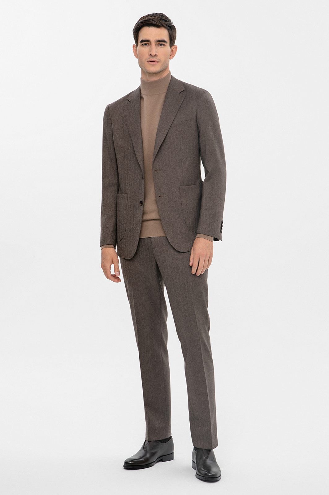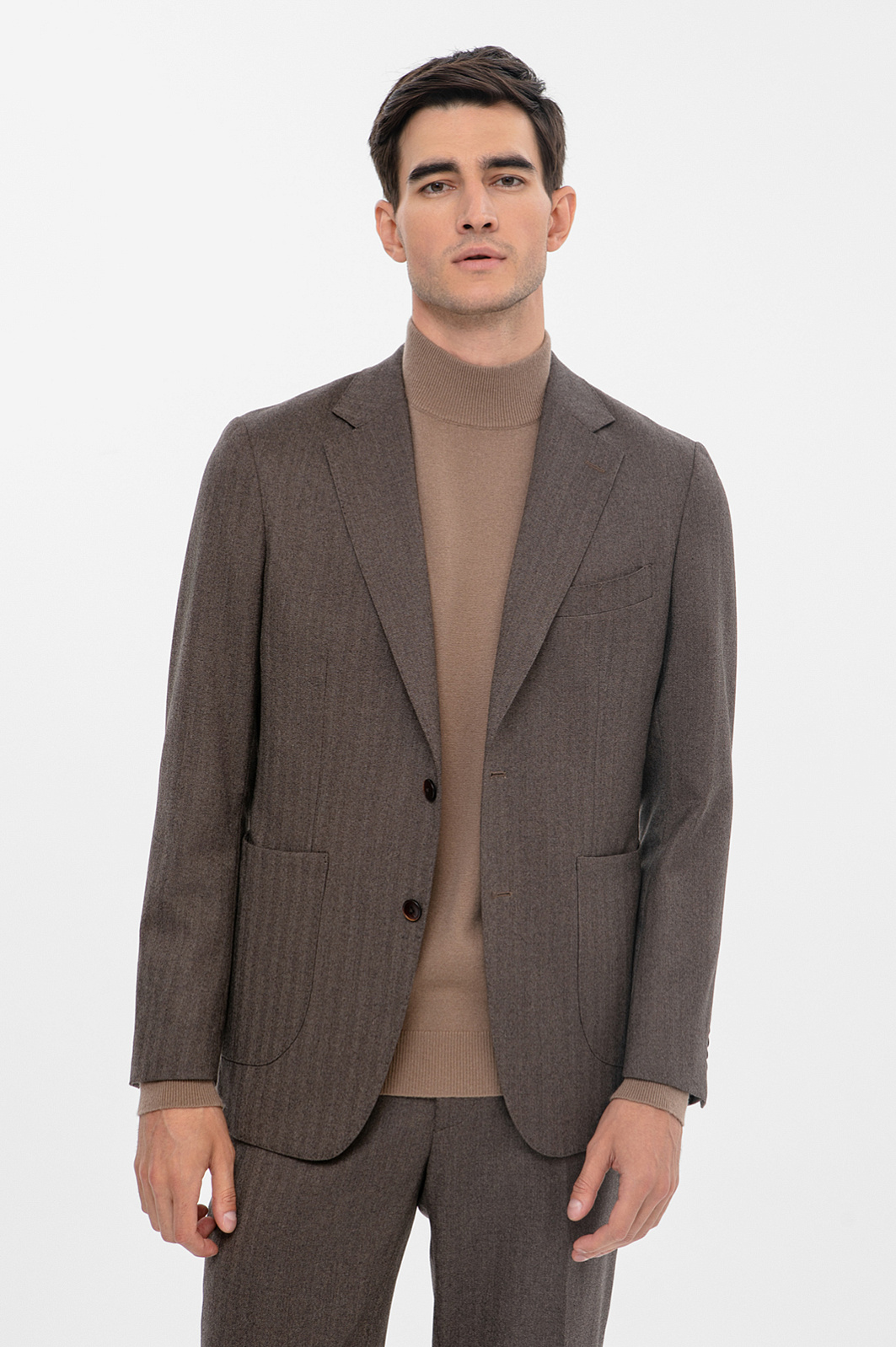 Пиджак KANZLER в светло-коричневом оттенке - безупречный крой и внимание к деталям. Премиальность изделия проявляется в каждой детали: от выбора ткани до фурнитуры в тон. Модель выполнена из высококачественной премиальной шерсти с едва заметным узором и меланжевым эффектом - материал обеспечивает долговечность изделия и тактильный комфорт при носке. Натуральная шерсть Супер 120S гарантирует прочность и устойчивость к износу. Полоски на полотне создают интересный визуальный эффект, а приталенный силуэт подчёркивает фигуру. Накладные карманы снижают градус формальности, добавляют практичности и современного стиля. Пиджак идеально сочетается с брюками того же оттенка, создавая элегантный образ для любого случая. Параметры модели: рост 192, 101-76-97 Размер на модели: 50