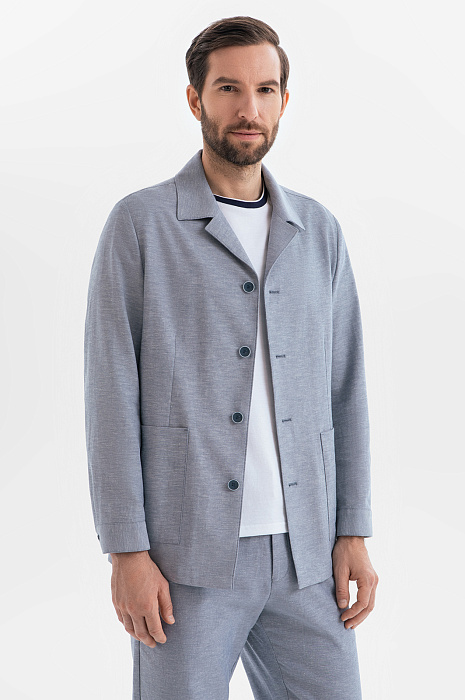 Создавая современный серо-голубой пиджак KANZLER из хлопка и льна, дизайнеры переосмыслили классические каноны и добавили элементы рубашечного кроя. Накладные карманы, манжеты с пуговицами и небольшие боковые разрезы придают модели функциональный и практичный вид. Легкую свободную вещь без подкладки можно носить как пиджак или верхнюю рубашку. Гладкая натуральная ткань с отчетливым саржевым переплетением отлично держит форму, сохраняя мягкость. Смесовой материал состоит из легкого дышащего хлопка и прохладного льна. Идеальное сочетание для теплых летних дней. Параметры модели: рост 187, 99-81-97 Размер на модели: 50