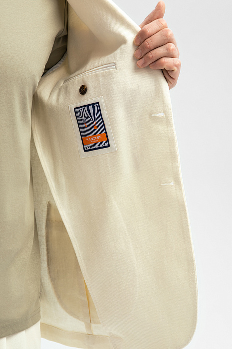 Классический однобортный пиджак KANZLER молочного оттенка изо льна и тенсела придаст повседневному образу шик и расслабленность итальянского юга. Особенно эффектно и изысканно модель смотрится с белыми брюками и шортами. Неформальность пиджаку добавляют накладные карманы и контрастные роговые пуговицы. Изящный, слегка зауженный крой подчеркивает линию плеч и талии. Облегченная модель с частичной подкладкой из натуральной ткани идеально подходит для отдыха в теплые дни. Гипоаллергенный смесовой материал сочетает достоинства льна и тенсела. Гладкие воздухопроницаемые волокна льна охлаждают тело в жару. Тенсел, созданный из природного материала (целлюлозы), отлично отводит влагу, надолго сохраняя ощущение свежести. Параметры модели: рост 189, 102-80-99 Размер на модели: 50