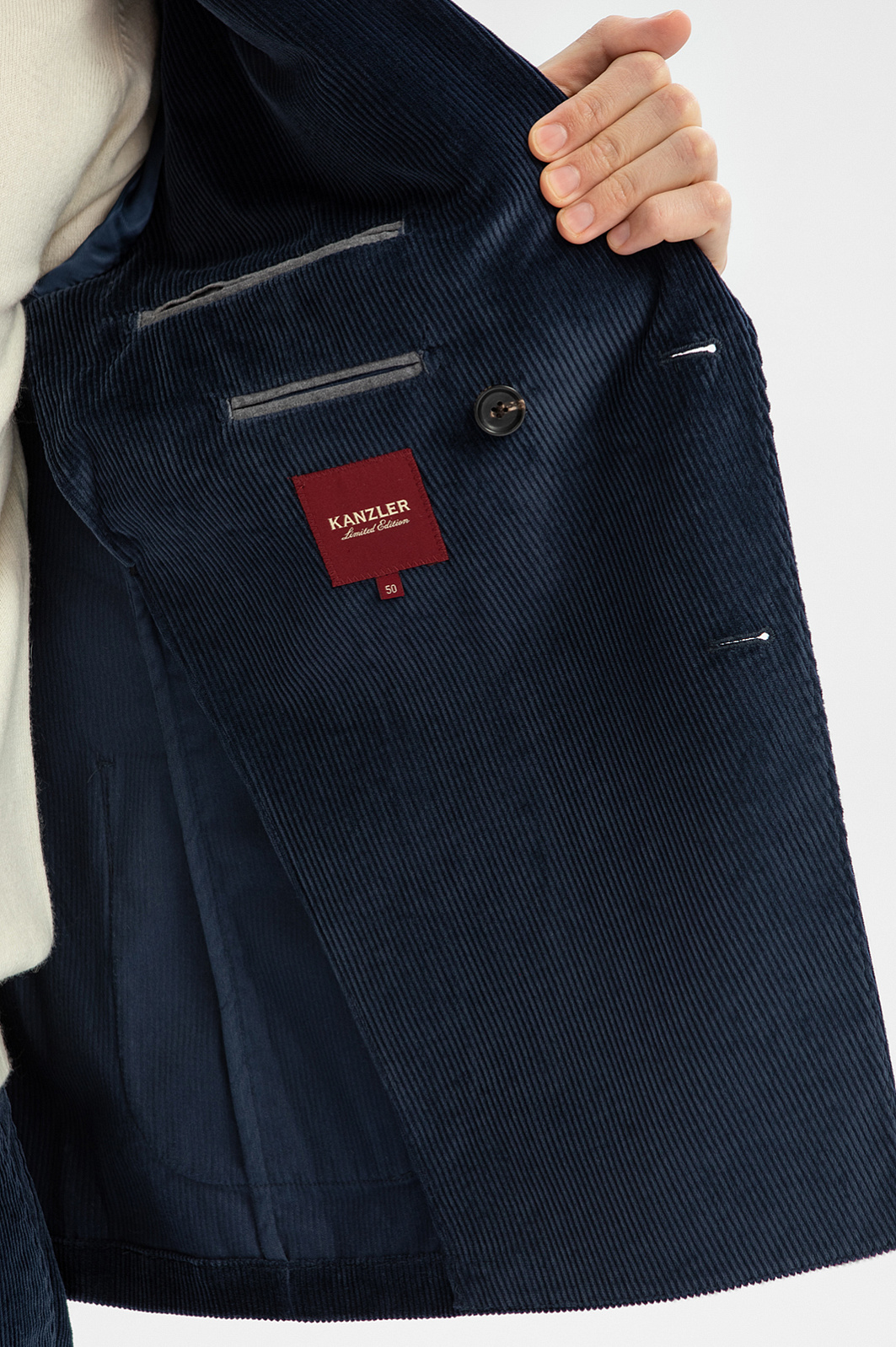 Пиджак из вельвета Duca Visconti Di Modrone, лимитированная коллекция, цвет синий, цена 24 990 руб., код 269371 - купить в Уфе в интернет-магазине KANZLER