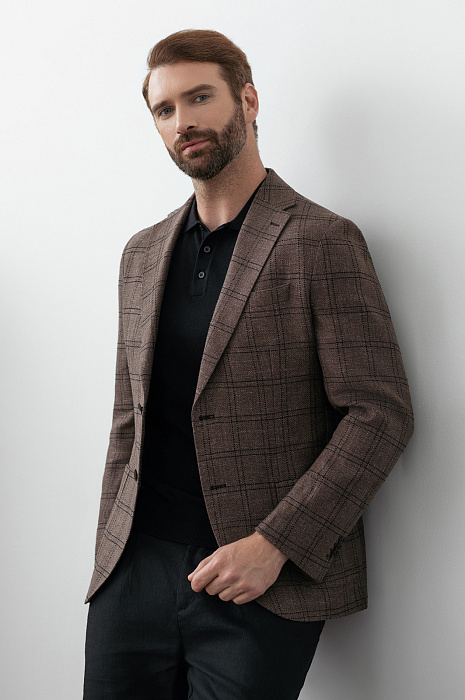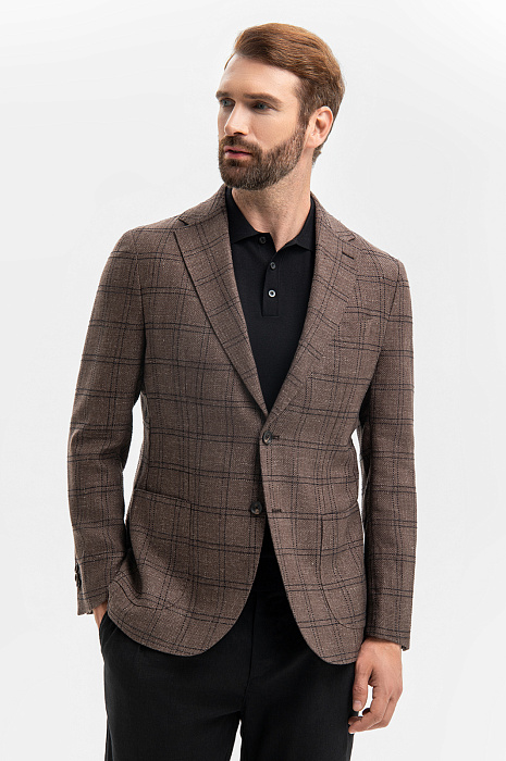 Пиджак из шерсти, льна и хлопка, лимитированная коллекция, цвет коричневый, цена 24 990 руб., код 269613 - купить в Уфе в интернет-магазине KANZLER