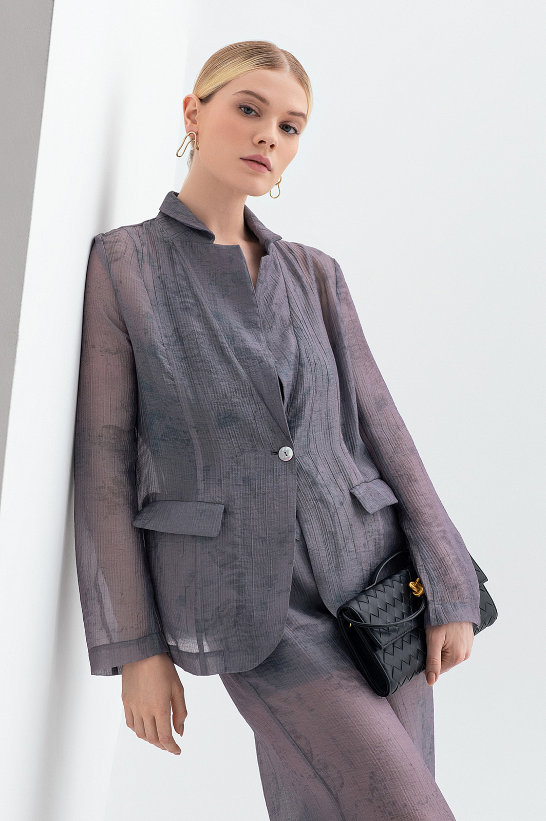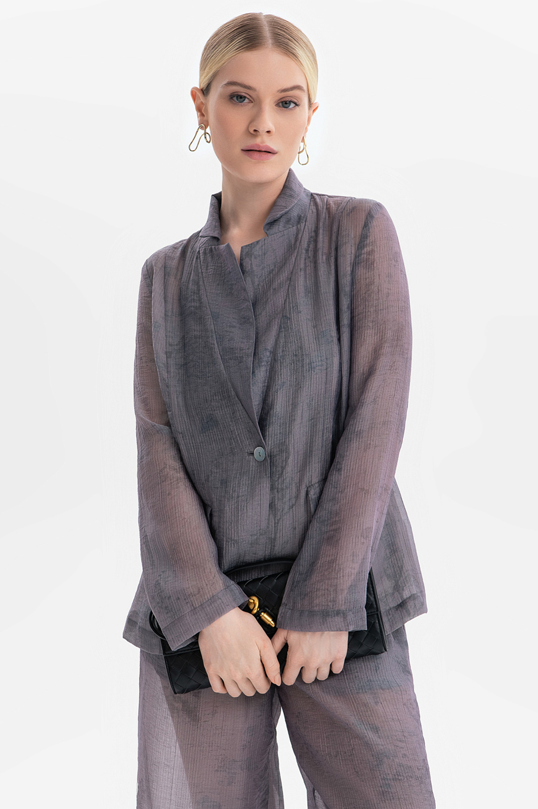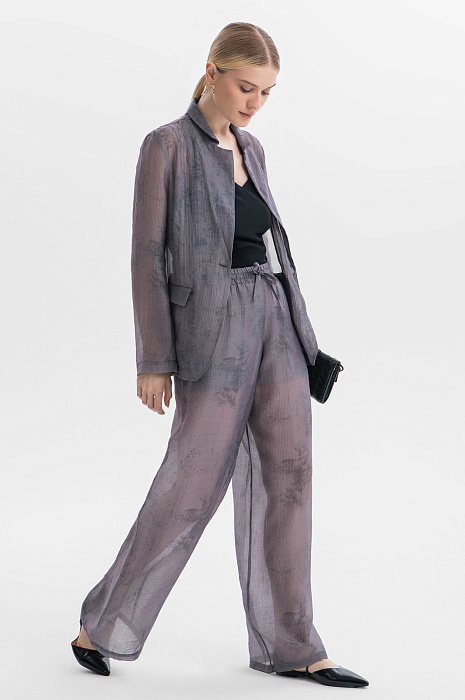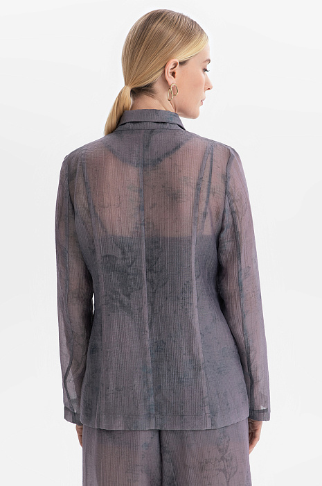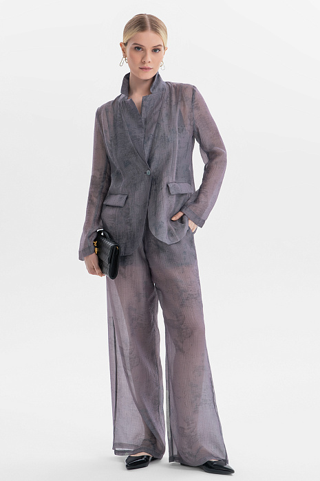 Пиджак KANZLER из серого полупрозрачного фактурного тенсела с легким растительным принтом создает флер таинственности, балансируя на грани видимого и скрытого. Это стильная и роскошная вещь для повседневной жизни и вечерних выходов. Слегка приталенный крой и мягкие очертания подчеркивают достоинства женственной фигуры. Красивая фактурная ткань окутывает тело плотной дымчатой вуалью. Смесовый материал сделан из мягкого нежного тенсела, который хорошо пропускает воздух и сохраняет естественное тепло тела, и прочного износоустойчивого полиамида. Параметры модели: рост 175, 88-65-92 Размер на модели: S