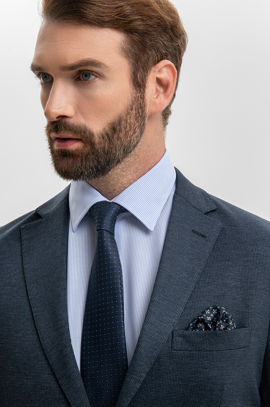 Офисный однобортный пиджак KANZLER сдержанного серо-синего оттенка, прилегающего кроя без подкладки — непринужденный вариант для повседневного делового стиля. Универсальная практичная модель подходит для любого сезона. Зауженный крой подчеркивает контраст между линиями плеч и талии, создавая выразительный силуэт. Накладные карманы придают образу современный городской вид. Облегченная конструкция обеспечивает комфорт и свободу движений. Практичная смесовая ткань в микроклетку (60% полиэстер, 36% район, 4% спандекс) устойчива к загрязнениям, хорошо пропускает воздух, держит форму и умеет адаптироваться к особенностям фигуры. Параметры модели: рост 189, 102-80-99 Размер на модели: 50