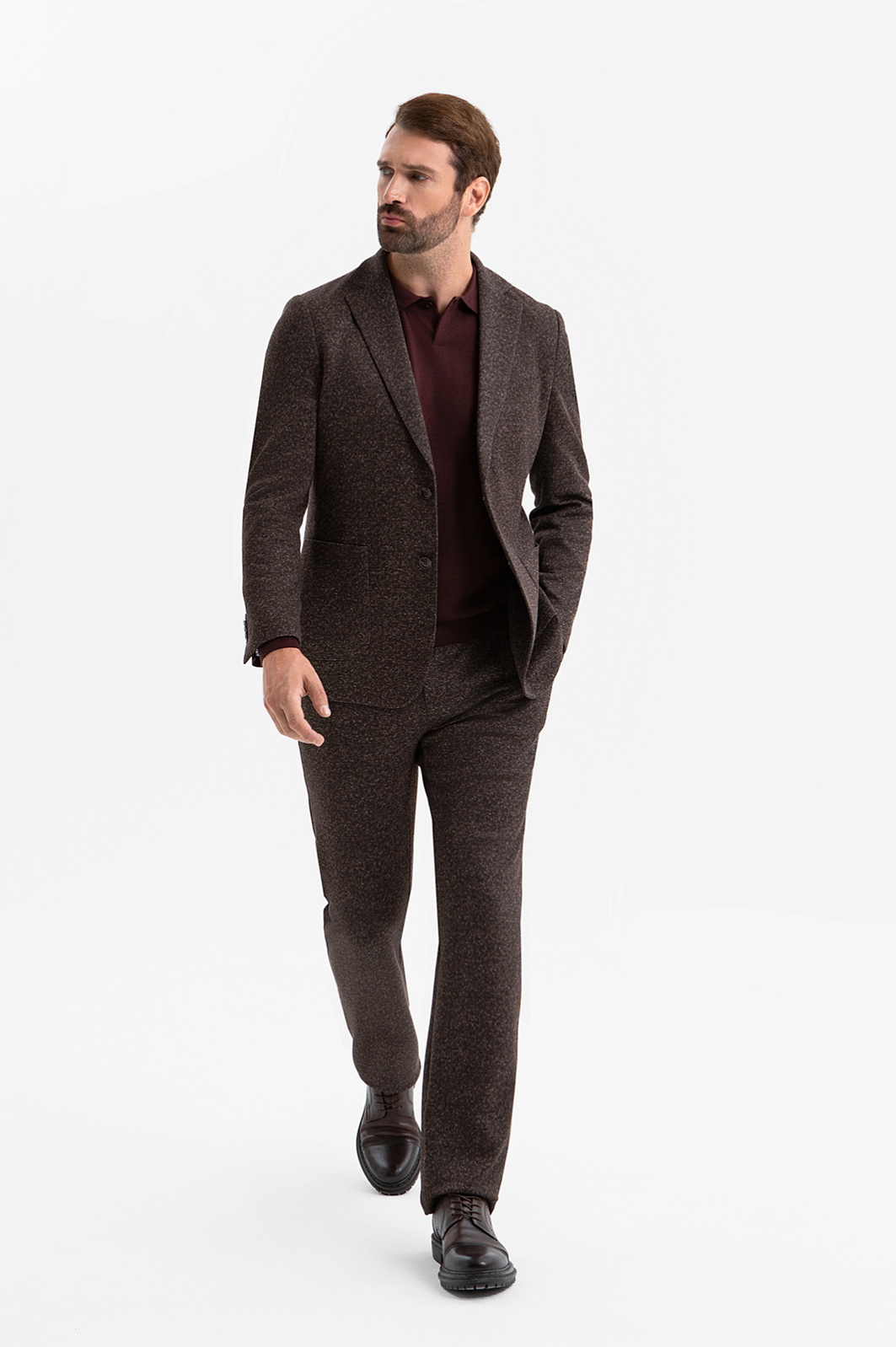 Пиджак KANZLER благородного коричневого оттенка с меланжевым эффектом создан для мужчины, который выбирает элегантность без лишней строгости. Он одинаково подойдёт для офиса и неформальной дружеской встречи. Слегка приталенный крой подчеркивает фигуру. Облегчённая конструкция без подкладки делает модель удобной, а две шлицы сзади обеспечивают свободу движений. Аккуратные накладные карманы не утяжеляют силуэт и добавляют непринуждённости. Инновационная ткань, созданная из современных синтетических и натуральных волокон, держит форму и адаптируется к индивидуальным особенностям фигуры. Добавление хлопка позволяет ткани хорошо пропускать воздух. Параметры модели: рост 189, 102-80-99 Размер на модели: 50