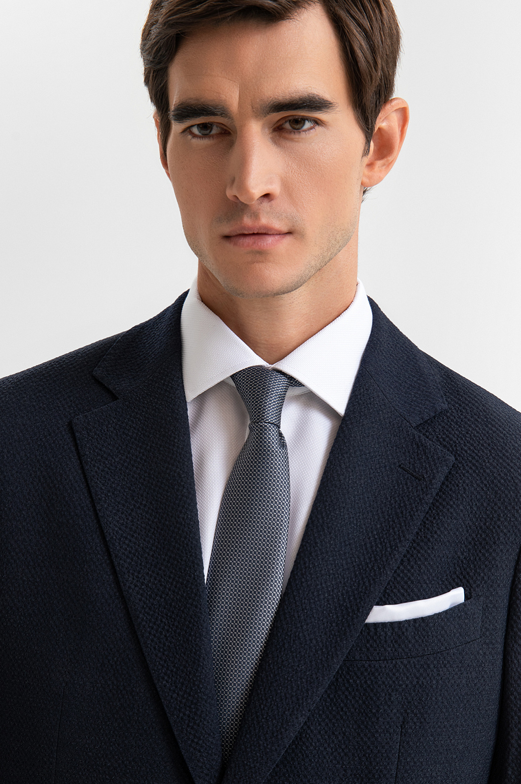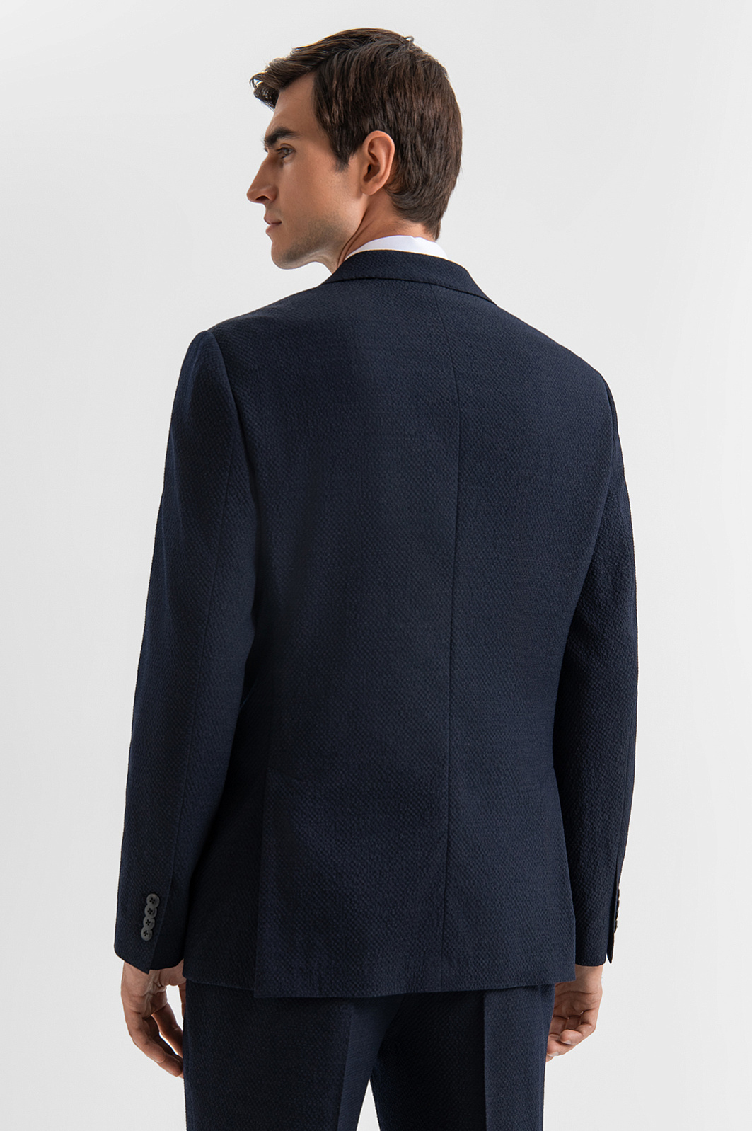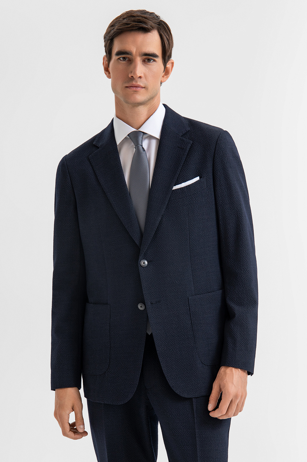 Эффектный темно-синий пиджак KANZLER из фактурной ткани (шерсть Супер 120S) — утончённый образец современной элегантности. Стильный выбор для офиса, деловых поездок и встреч. Приталенный крой подчёркивает фигуру. Благодаря частичной подкладке пиджак остаётся лёгким и адаптивным к динамичному ритму городской жизни. Накладные карманы придают модели современный вид. Фактурность материала делает его более сложным, а пиджак — изысканным и нарядным. Дорогая ткань из тончайших упругих волокон шерсти (97%) бережет не только тепло тела, но и форму пиджака. Небольшая добавка эластана служит хорошей посадке и комфорту при движении. Параметры модели: рост 192, 101-76-97 Размер на модели: 50