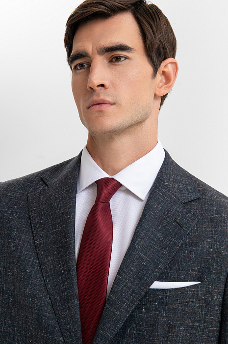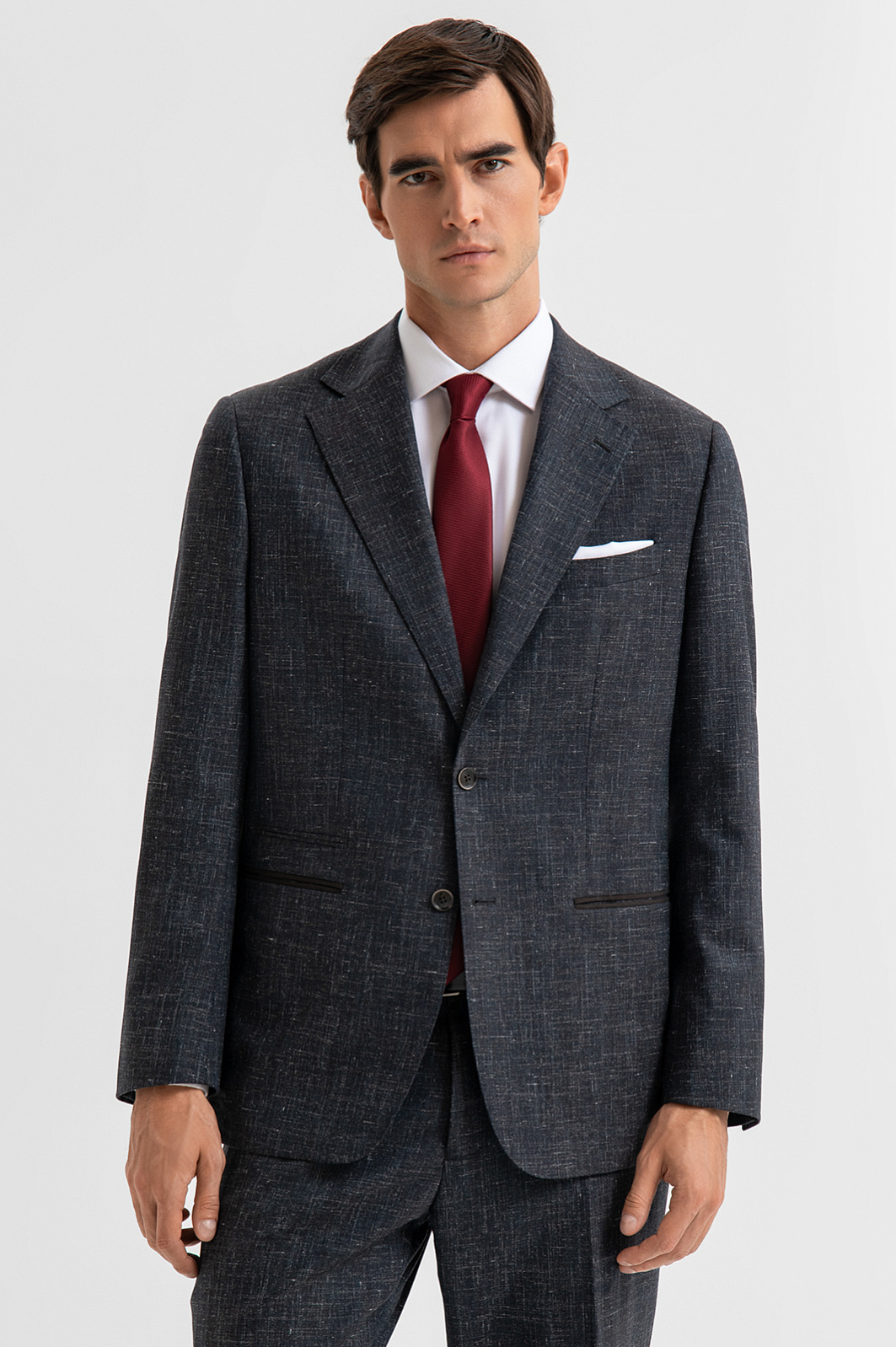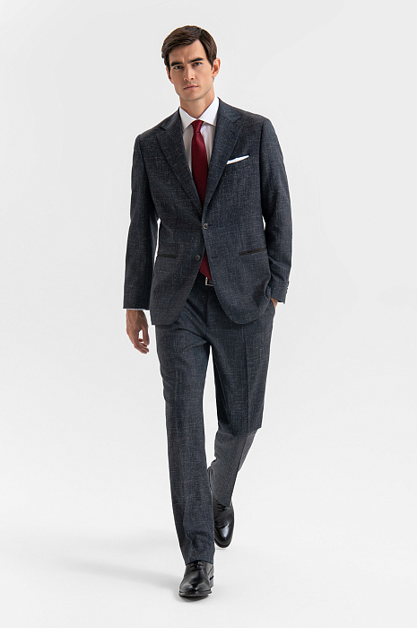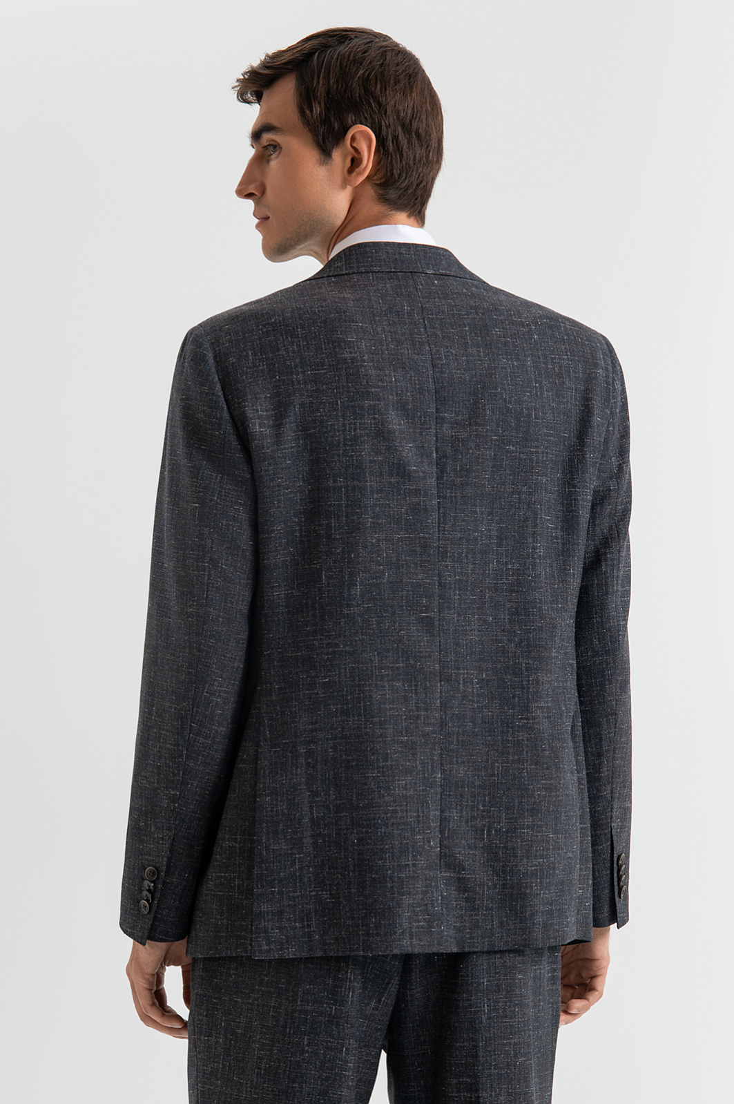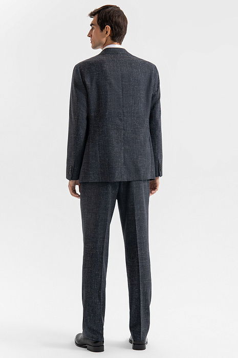 Пиджак прямого кроя KANZLER глубокого синего оттенка с деликатным меланжевым эффектом из шерсти, льна и шелка — вариант непринужденной классики. Две шлицы на спинке обеспечивают комфорт во время движения. Прямые карманы в рамке подчёркивают безупречно собранный современный силуэт. Пуговицы в тон дополняют цельный образ. Светлая нить в переплетении ткани образует лёгкий рисунок и придаёт пиджаку визуальную сложность, сохраняя сдержанную элегантность. Дорогой материал создан из сверхтонкой костюмной шерсти Супер 120s с добавлением льна и шёлка. Благородное трио создает идеальный баланс между эстетикой, комфортом и практичностью. Параметры модели: рост 192, 101-76-97 Размер на модели: 50
