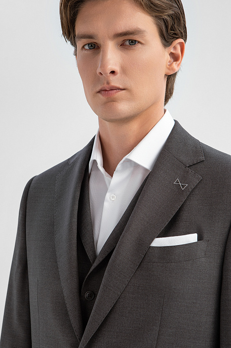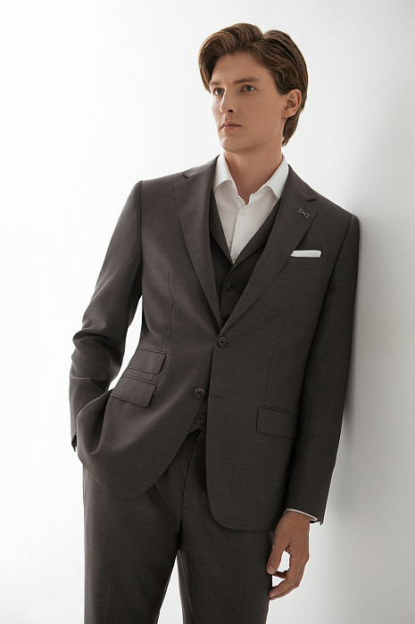 Строгий серый пиджак KANZLER из шерсти и шелка с водоотталкивающей обработкой — воплощение философии современной элегантности, основанной на классическом стиле. Лацкан украшен небольшой фирменной бабочкой. Силуэт свободно облегает фигуру и подходит для любой комплекции. Две шлицы сзади делают каждое движение комфортным. Нижние карманы, в том числе и «карман для билетов», расположенный над основным карманом на правой стороне пиджака, дополнены традиционным клапаном. Укромным местом для хранения важных мелочей служат внутренние карманы. Истинная роскошь чувствуется в материале: тончайшая костюмная шерсть Супер 120S, дополненная шёлком, дарит ткани легкий благородный блеск и обеспечивает телу комфортную температуру. Водоотталкивающая обработка защищает пиджак от капризов погоды. Параметры модели: рост 191, 97-77-99 Размер на модели: 50