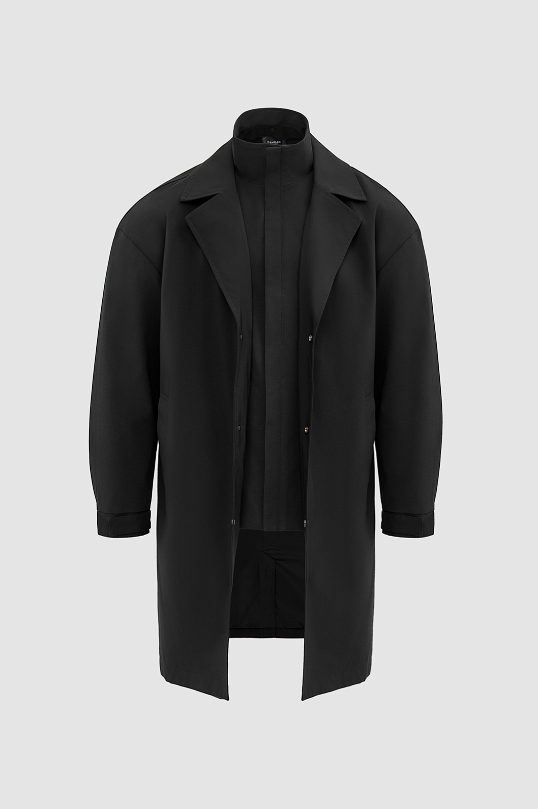 Черный плащ KANZLER с манишкой — идеальный вариант верхней одежды для города и путешествий в прохладные дни и межсезонье. Дизайн обращается к городской эстетике. Традиционные детали — классический воротник, широкие лацканы, отлетная кокетка на спинке — сочетаются с функциональными элементами — штормовой планкой, кнопками и застёжкой-молнией. Манишка с высоким воротником, которую легко пристегнуть к плащу, служит для дополнительного утепления. Модель выполнена из непродуваемой ткани с водоотталкивающей обработкой, которая надёжно защищает от дождя и ветра. Прочный полиэстер поддерживает форму и сохраняет безупречный вид плаща сезон за сезоном.