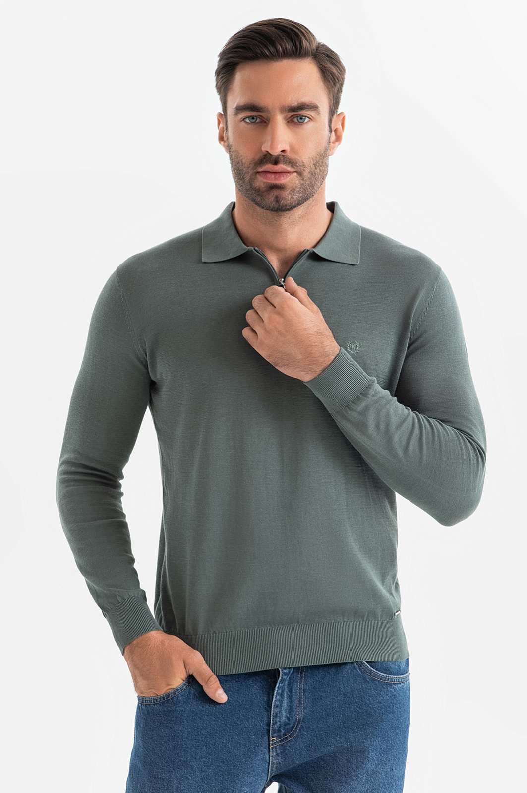 Поло KANZLER из хлопка, шёлка и льна - комфортная вещь, которая станет основой демисезонных образов. Модель с фирменным гербом и удобной застежкой на молнии идеально подчеркивает фигуру благодаря приталенному крою и подходит как для кежуал-образов, так и для более изысканных сочетаний. Главное преимущество изделия — премиальный состав. Смесь натуральных волокон — хлопка, шёлка и льна — обладает уникальными свойствами. Хлопок делает ткань дышащей и приятной на ощупь, лён обеспечивает лёгкость и прохладу, а шёлк добавляет изделию мягкость и лёгкий благородный блеск. Эта комбинация материалов не только гарантирует максимальный комфорт, но и подчёркивает статус и изысканность изделия. Цвет модели — глубокий бутылочный зелёный — настоящий тренд сезона. Он выгодно оттеняет кожу и легко комбинируется с классическими и повседневными вещами. Советуем носить это поло с брюками, чтобы создать стильный образ, который будет уместен как на прогулке, так и на деловой встрече. Параметры модели: рост 192, 108-83-102 Размер на модели: M