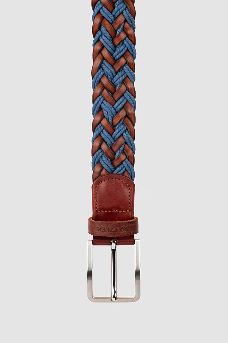 Ремень плетеный из натуральной кожи, цвет коричневый, цена 2 990 руб., код 269455 - купить в Уфе в интернет-магазине KANZLER