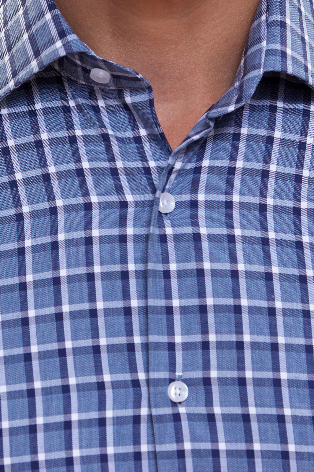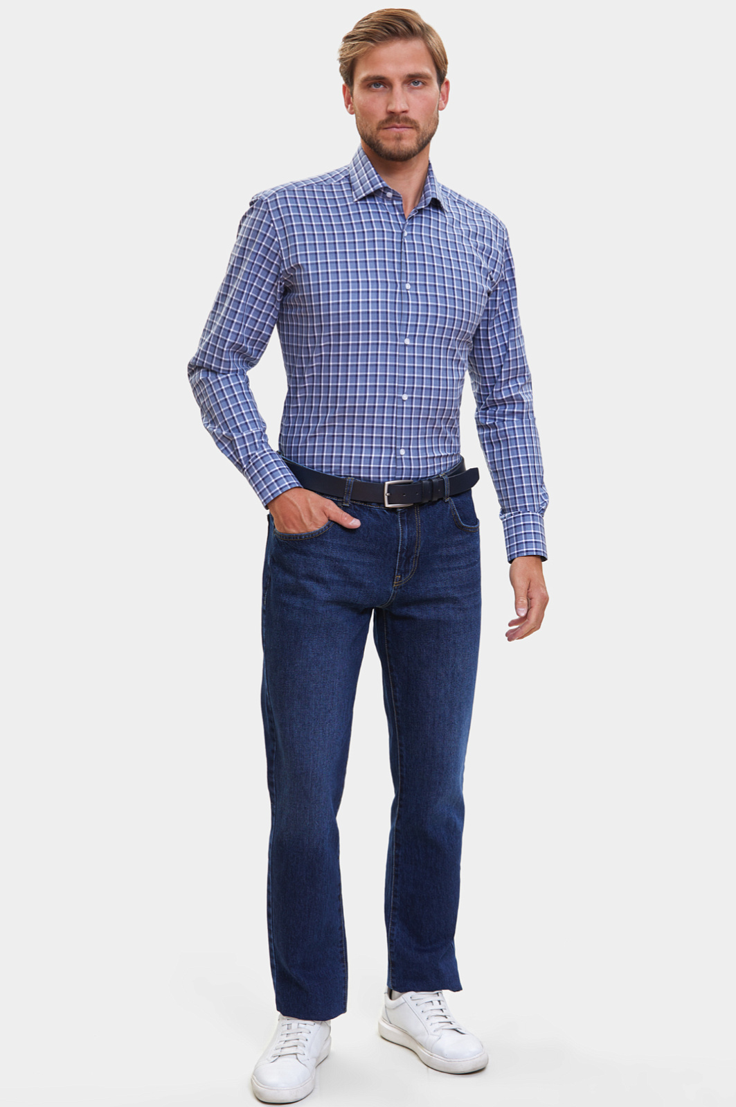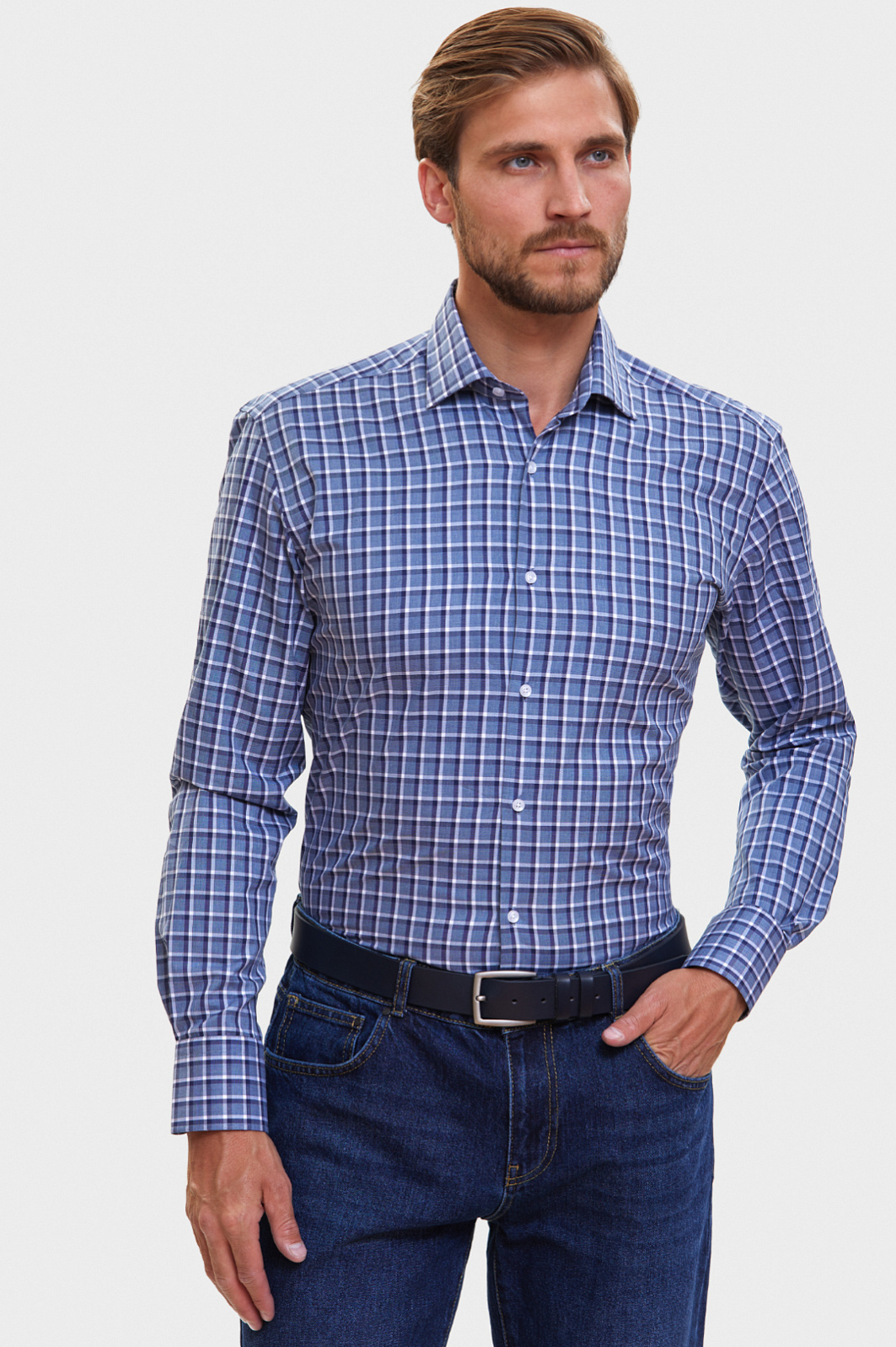 Рубашка из хлопка в клетку, цвет синий, цена 4 990 руб., код 266506 - купить в Уфе в интернет-магазине KANZLER