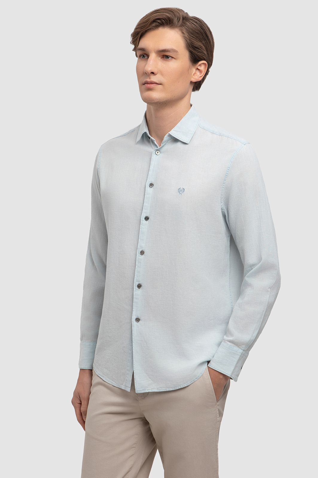 Рубашка изо льна и хлопка, цвет голубой, цена 5 990 руб., код 266934 - купить в Уфе в интернет-магазине KANZLER
