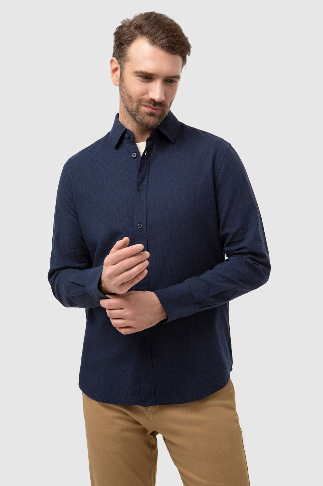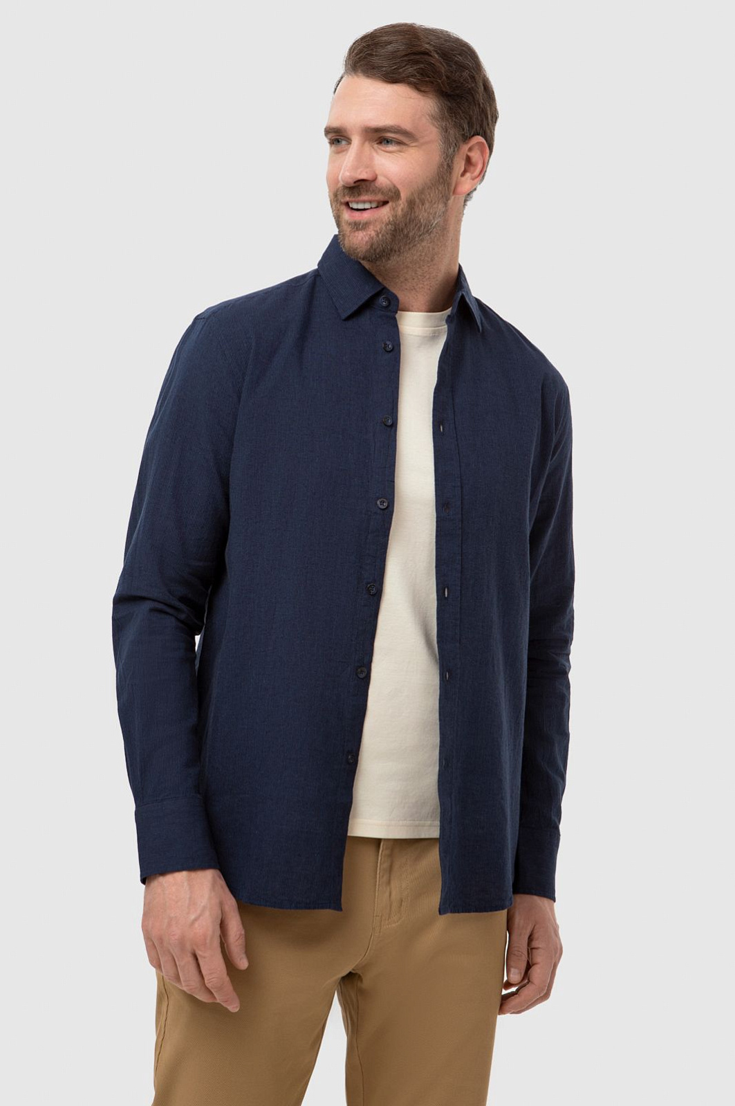 Классная рубашка с добавлением льна, сидит как влитая.