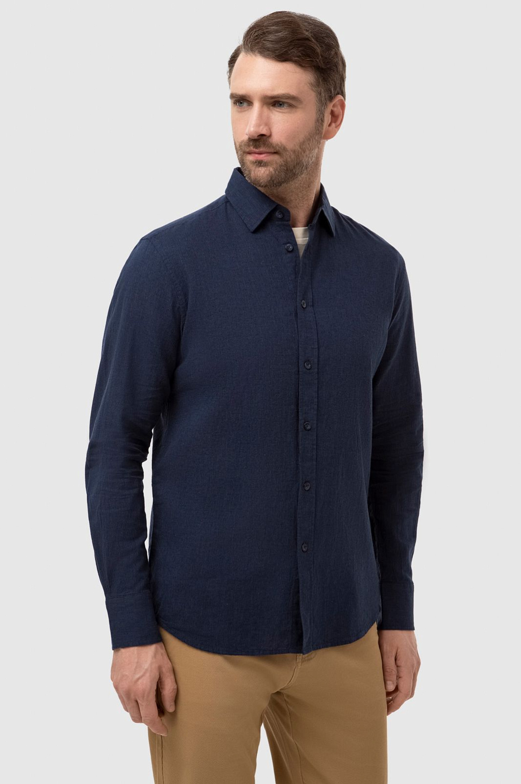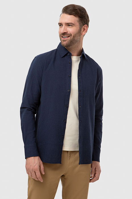 Рубашка изо льна и хлопка, цвет синий, цена 6 990 руб., код 266935 - купить в Уфе в интернет-магазине KANZLER