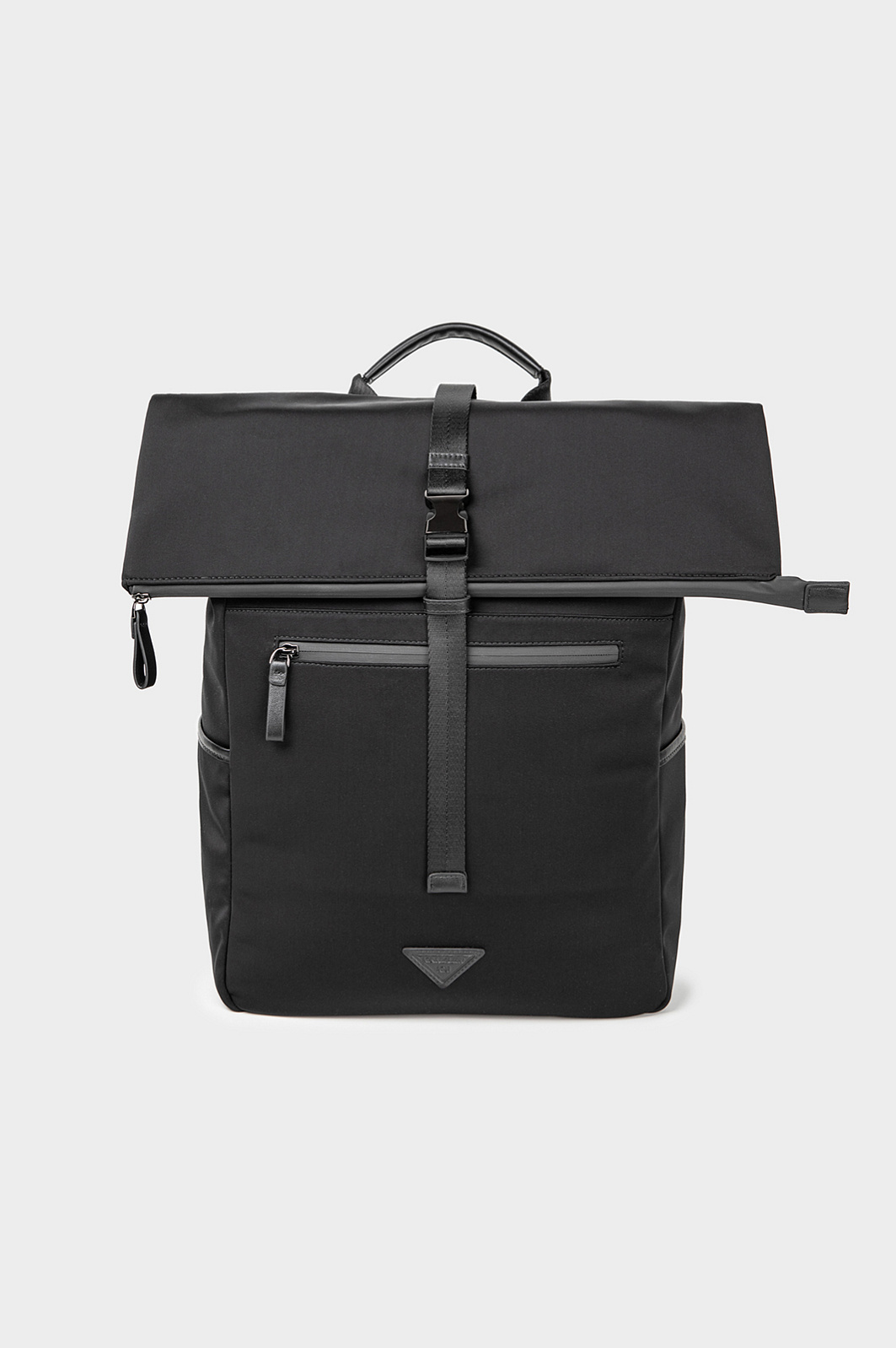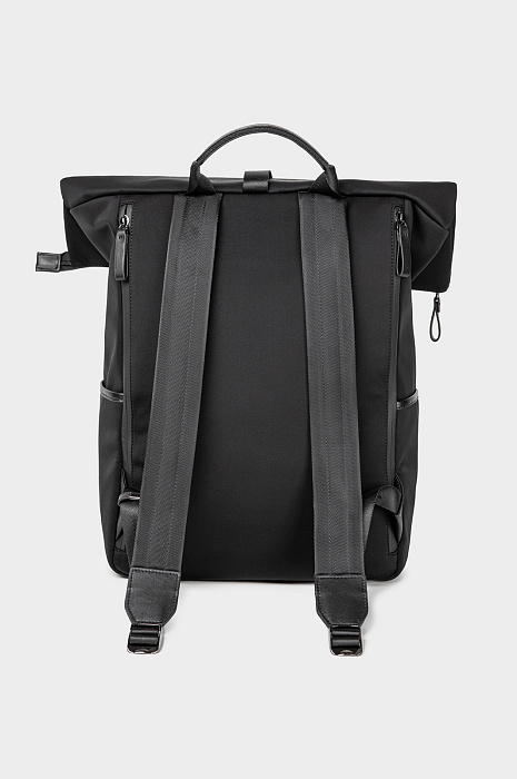 Легкий черный рюкзак KANZLER из нейлона с кожаной отделкой в духе эстетики минимализма и хайтек, навеянной эстетикой Сеула — города передовых технологий и культурного разнообразия. Застежка-молния и дополнительный ремень с пряжкой усиливают защиту содержимого и придают рюкзаку урбанистический вид. Внутри — скрытые отделения для гаджетов, кабелей, документов, снаружи — плоские аккуратные карманы. С помощью ручки и широких регулируемых лямок рюкзак можно носить в руке или на спине.